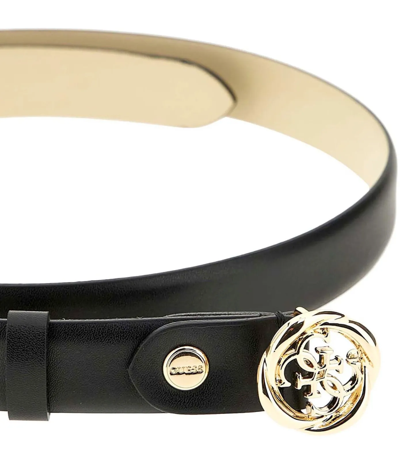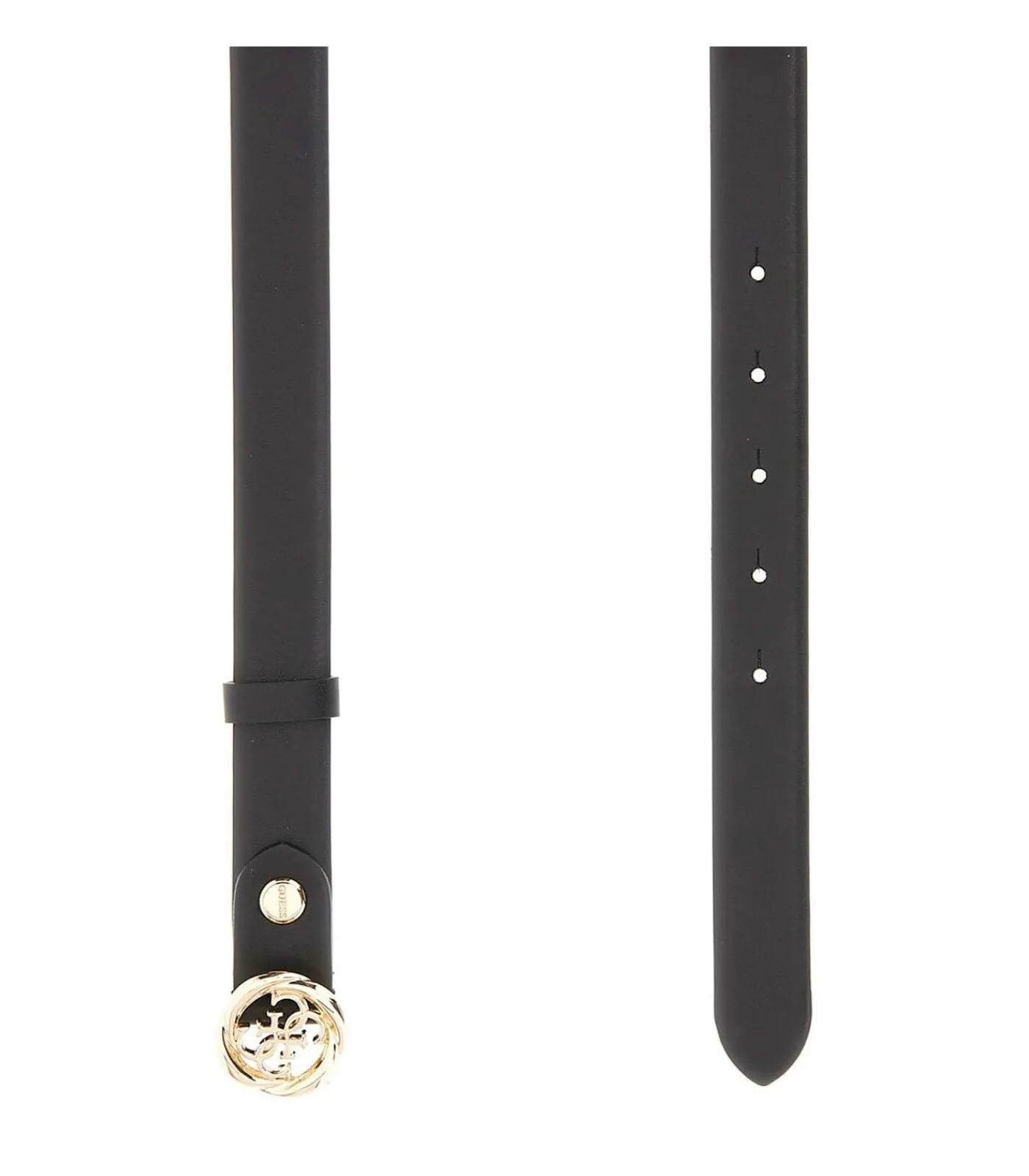 Kleur: Zwart Samenstelling: 100% Polyester Sluiting: Goudkleurige metalen gesp met ingeweven logo Details: Verstelbare riem, slank design H25 Gebruik: Ideaal voor het completeren van een casual of elegante look, perfect voor het verbeteren van het silhouet met een verfijnd en modern accessoire.