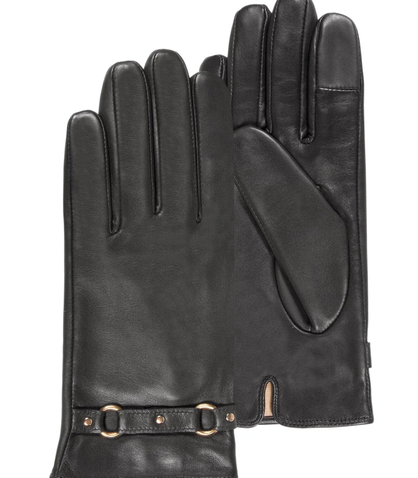 DAMES ISOTONER Leren tactiele dameshandschoenen bruine ringen