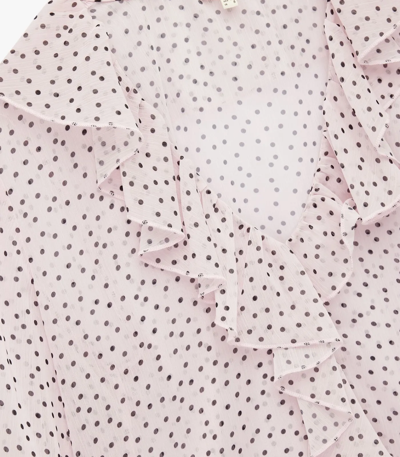 Koton Polka dot patterned ruffle detail long sleeve chiffon blouse.