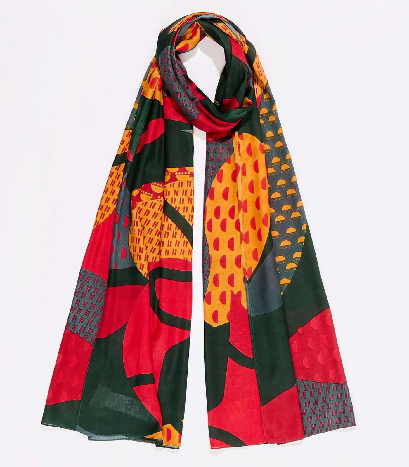 Grote rechthoekige sjaal van vloeiende en zachte LENZING™ ECOVERO™ viscose, ook origineel en kleurrijk om uw look een frisse touch te geven. Productdetails: grote vloeiende en soepele sjaal, LENZING™ ECOVERO™ viscose, afmetingen: 225 x 105 cm.