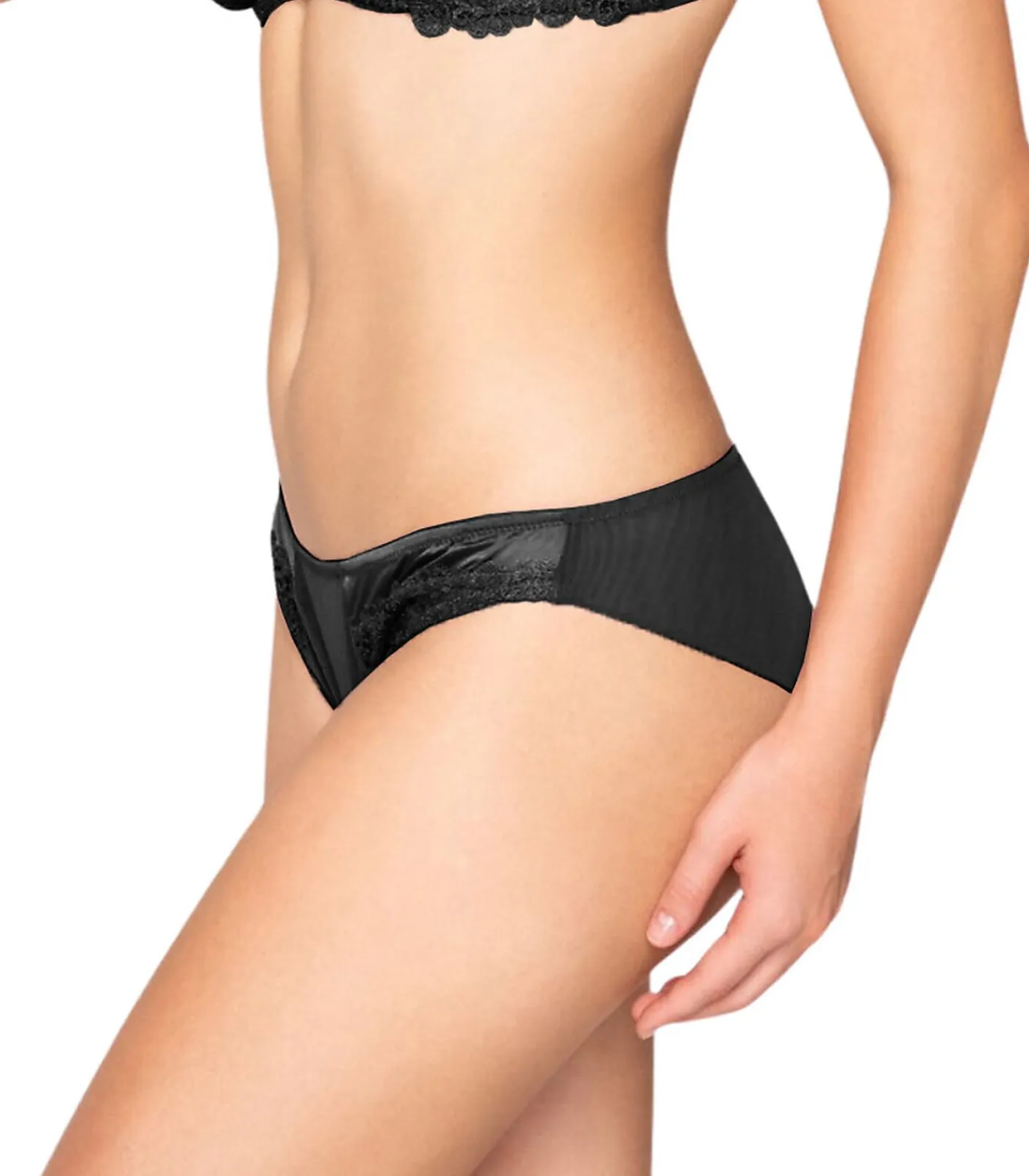 Een delicate Brazilian die je rondingen sensueel omhelst. Subtiel geplaatst kant en satijn voegen een onweerstaanbaar vleugje verfijning toe. Het zal je vrouwelijkheid versterken met een vleugje durf.