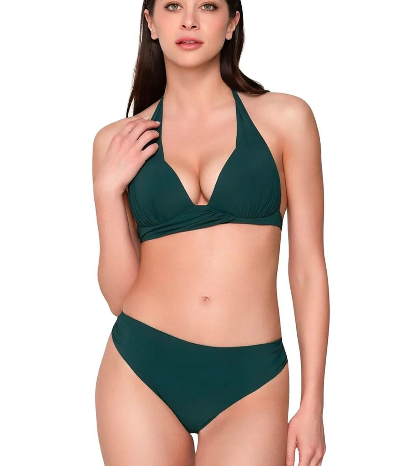 Slip uitgesneden zwembroekje met 5 cm hoge zijkanten die elegantie en functionaliteit combineren, perfect voor een geraffineerde look op het strand of bij het zwembad. De zijkanten zijn licht geplooid aan de voorkant, wat comfort en een vrouwelijke touch aan het ontwerp toevoegt. Het is gemaakt van Sensitive® Italiaanse stof van hoge kwaliteit. Het heeft een klein logo op de achterkant.[Zwempakje afzonderlijk verkrijgbaar. Topje en zwembroekje worden apart verkocht. Het topje, de sieraden en andere accessoires die het model op de foto’s draagt, zijn niet inbegrepen].