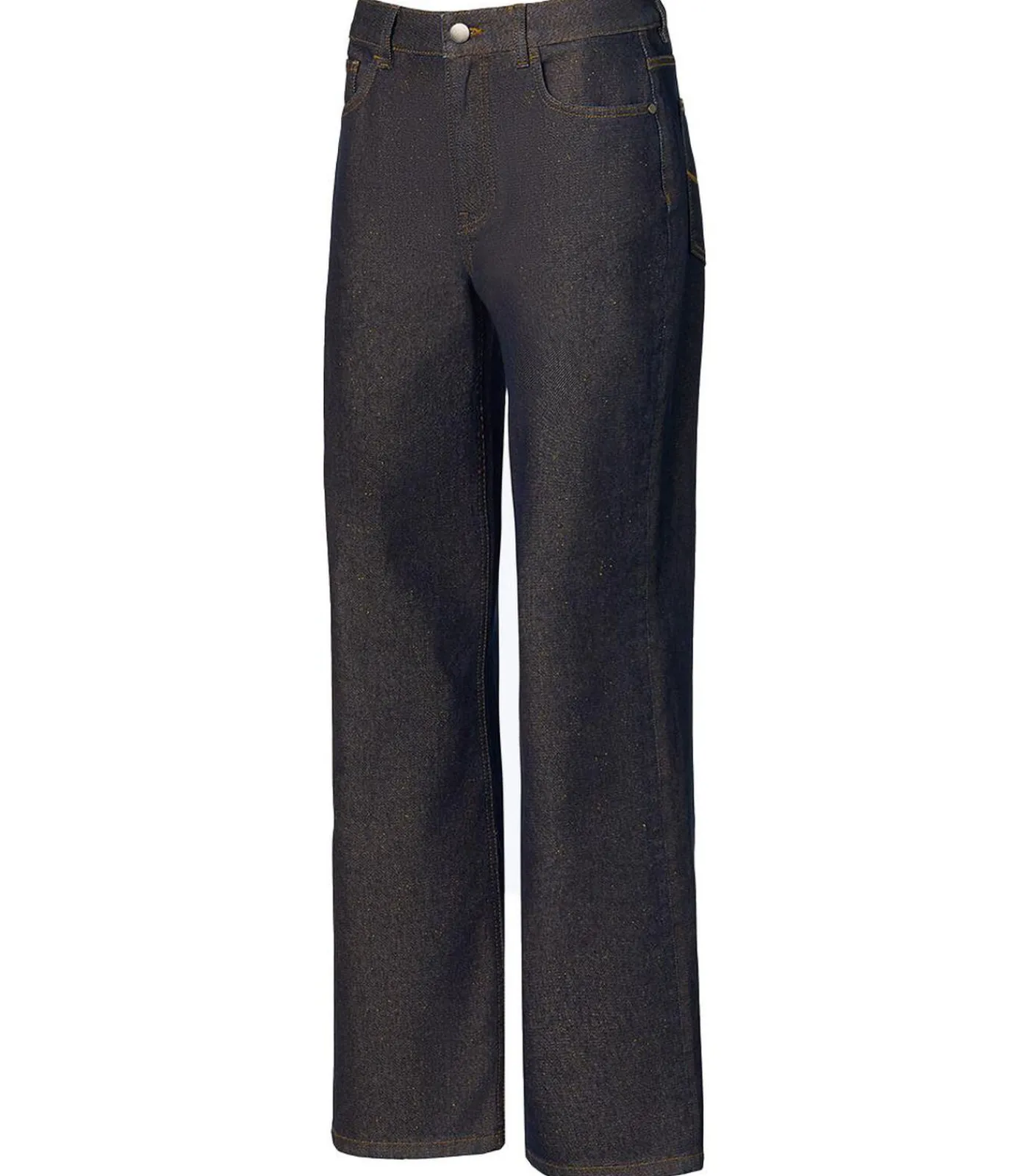 De Lienna broek in brons is een krachtige nieuwkomer binnen de denim lijn van Mart Visser. Deze donkerblauwe jeans met wijde pijpen is afgewerkt met een verfijnde bronzen coating, waardoor hij een chique en feestelijke uitstraling krijgt. Dankzij de hoge taille en de extra lange, wijde pijpen ontstaat een eigentijds silhouet, terwijl de aangesloten fit bij de heupen de broek vrouwelijk en flatterend houdt. De comfortabele katoenstretch zorgt voor een prettig draaggevoel, en met de vijf zakken behoudt de broek zijn klassieke jeanslook. Combineer deze broek met het bijpassende bronzen jack voor een complete denim co–ord die je gemakkelijk naar verschillende gelegenheden draagt. De Lienna broek is er ook in een zwarte glansvariant en een medium denim uitvoering, elk met een bijpassend jack. Dit is geen standaard jeans, maar een veelzijdige blikvanger die je keer op keer wilt dragen.