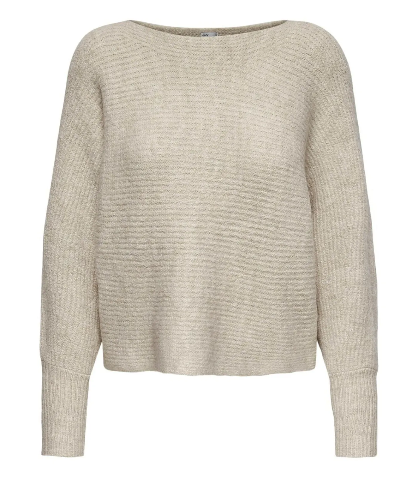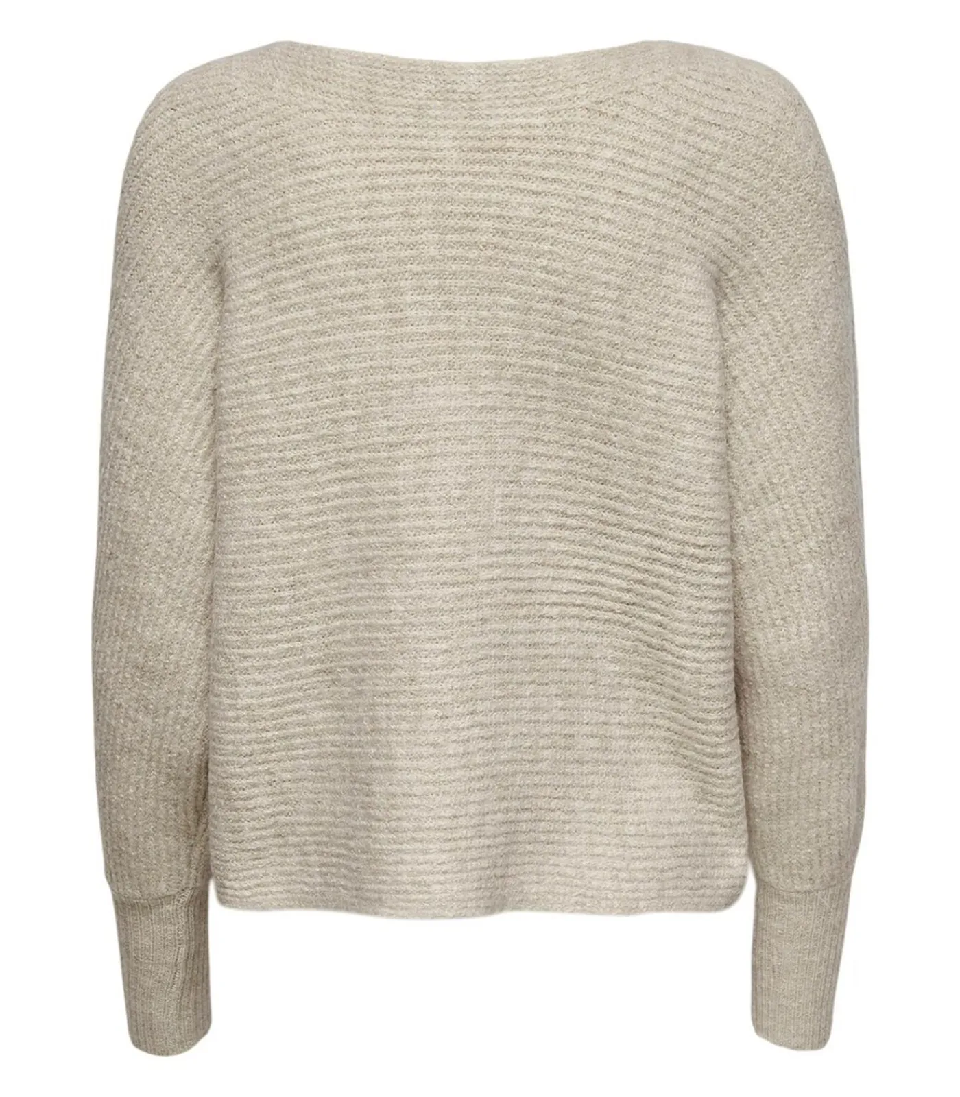 – Gebreide trui– Boothals– Geribde rand onderaan de mouwen– Een losse pasvorm– Lengte: 55 cm in maat M– Het model draagt maat S