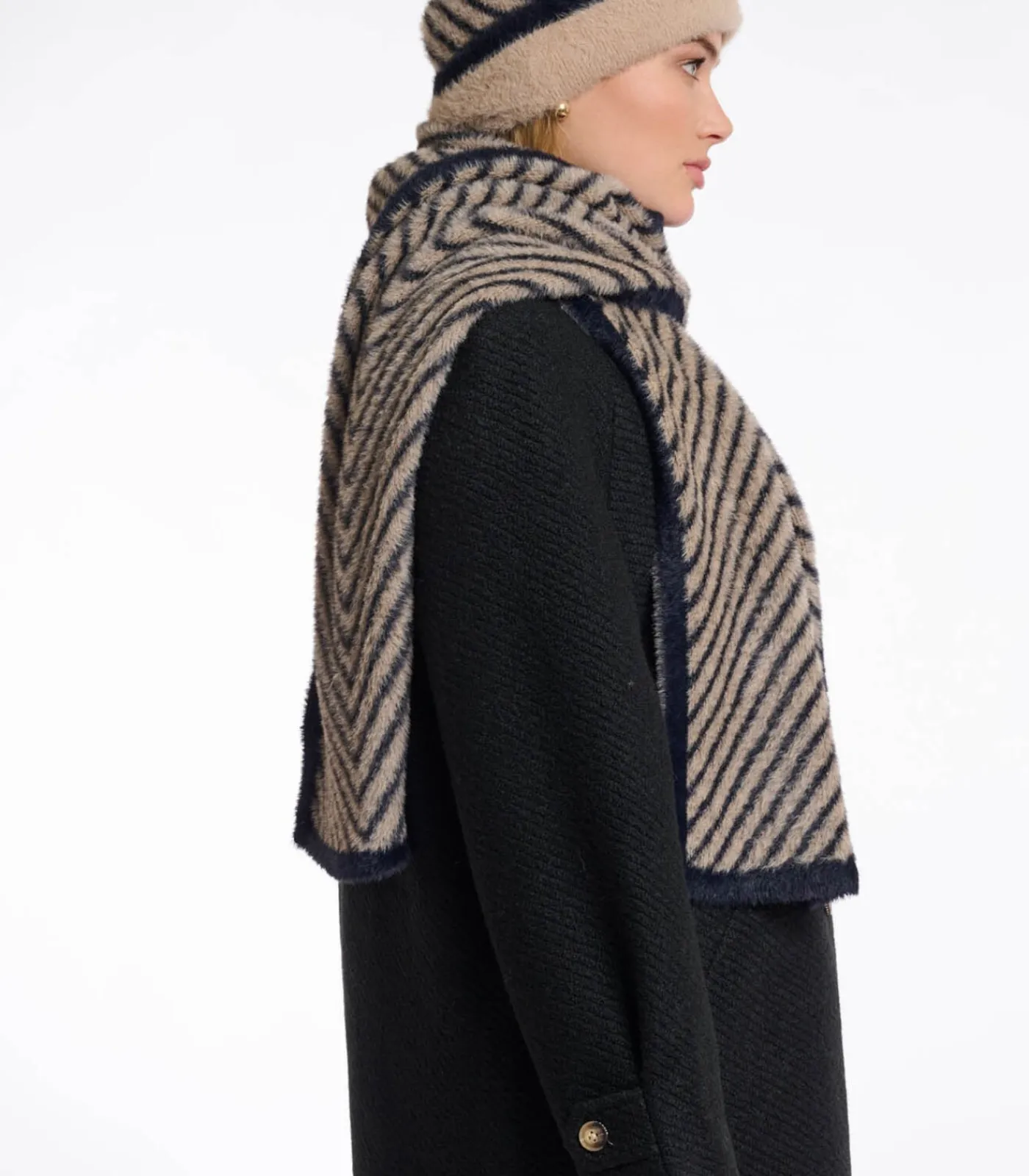 Wikkel jezelf in pure luxe met deze sjaal van ons kenmerkende materiaal. Stel je het gevoel voor van het ongelooflijk zachte materiaal tegen je huid, een zachte streling die warmte en comfort geeft. Het is een sjaal die je jarenlang zult koesteren.