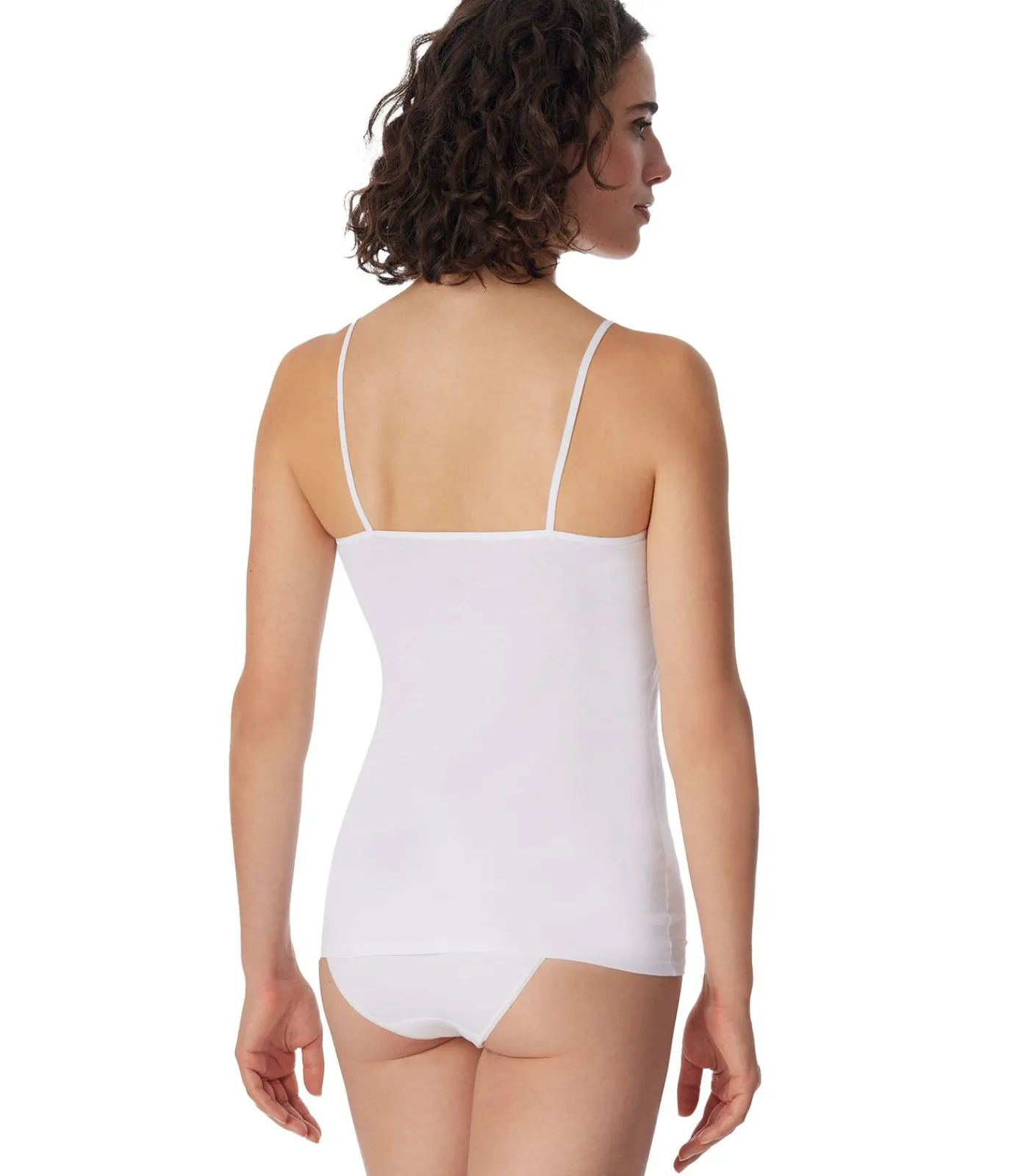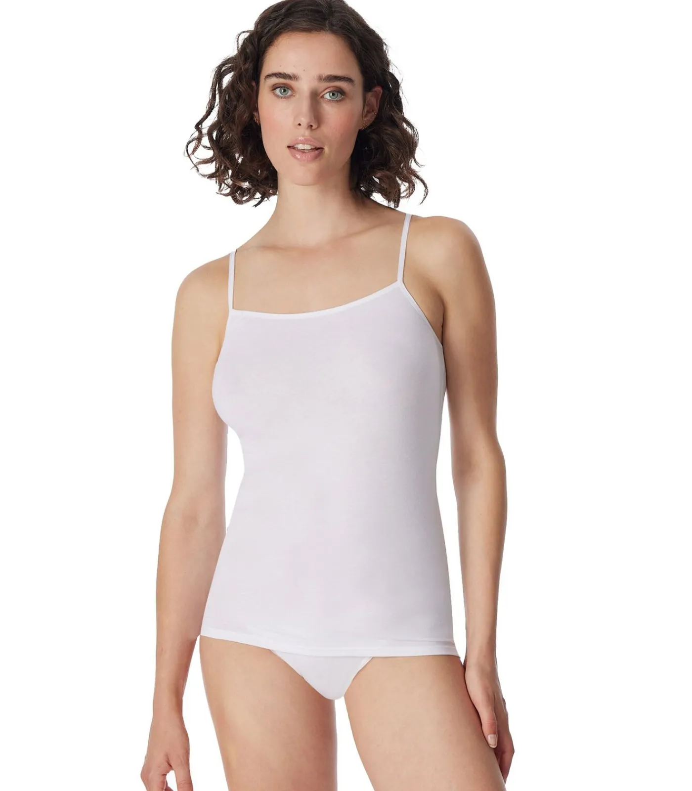 Spaghettitop van het merk SCHIESSER in een betaalbare verpakking van vier. Zachte, rekbare single jersey stof voor een comfortabele pasvorm. Ideaal als ondergoedshirt.