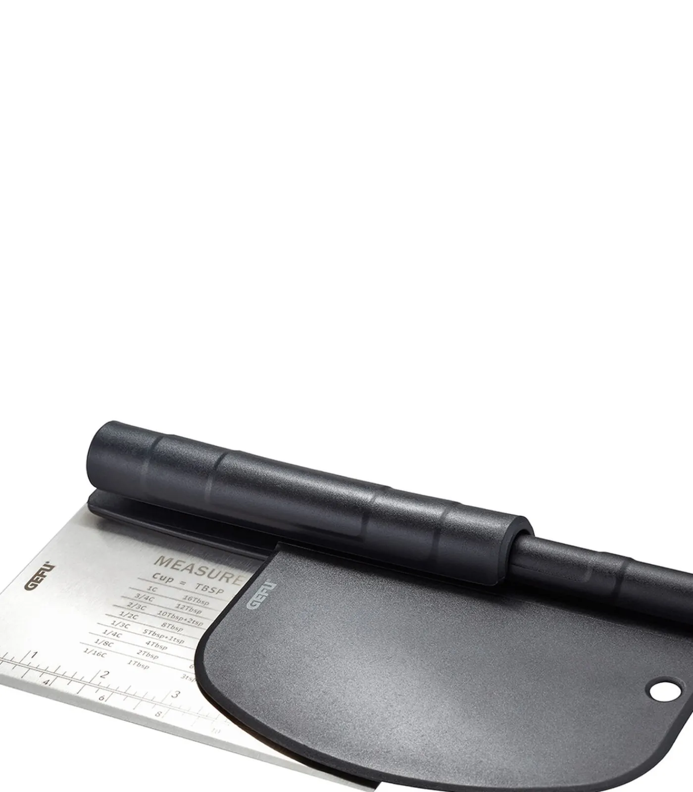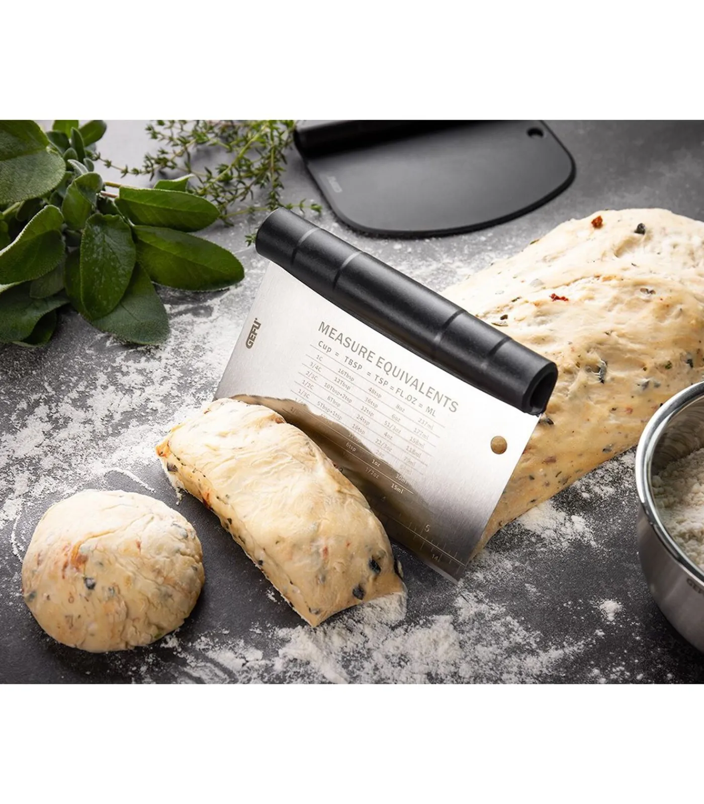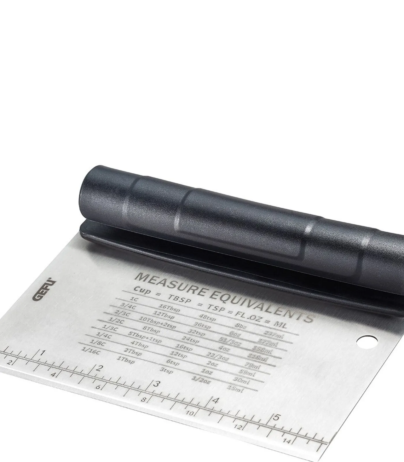 • deegsnijderset, plaatsbesparend in elkaar te zetten • hoogwaardige roestvrijstalen deegsnijder met meetschaal (cm / inch) en omrekentabel (Cup = TBSP = TSP = FL.OZ = ML)• ergonomisch gevormde kunststof–deegschraper