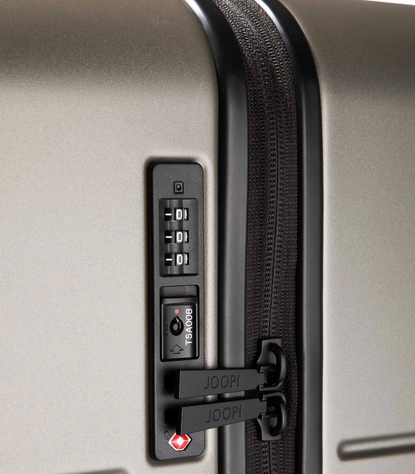 Hardschalige koffer met lichtlopende wielen en TSA–slot van JOOP! Duurzaam polycarbonaat, uitschuifbaar handvat, kenmerkende details. 77.20×48.50×30.60cm (HxBxD)
