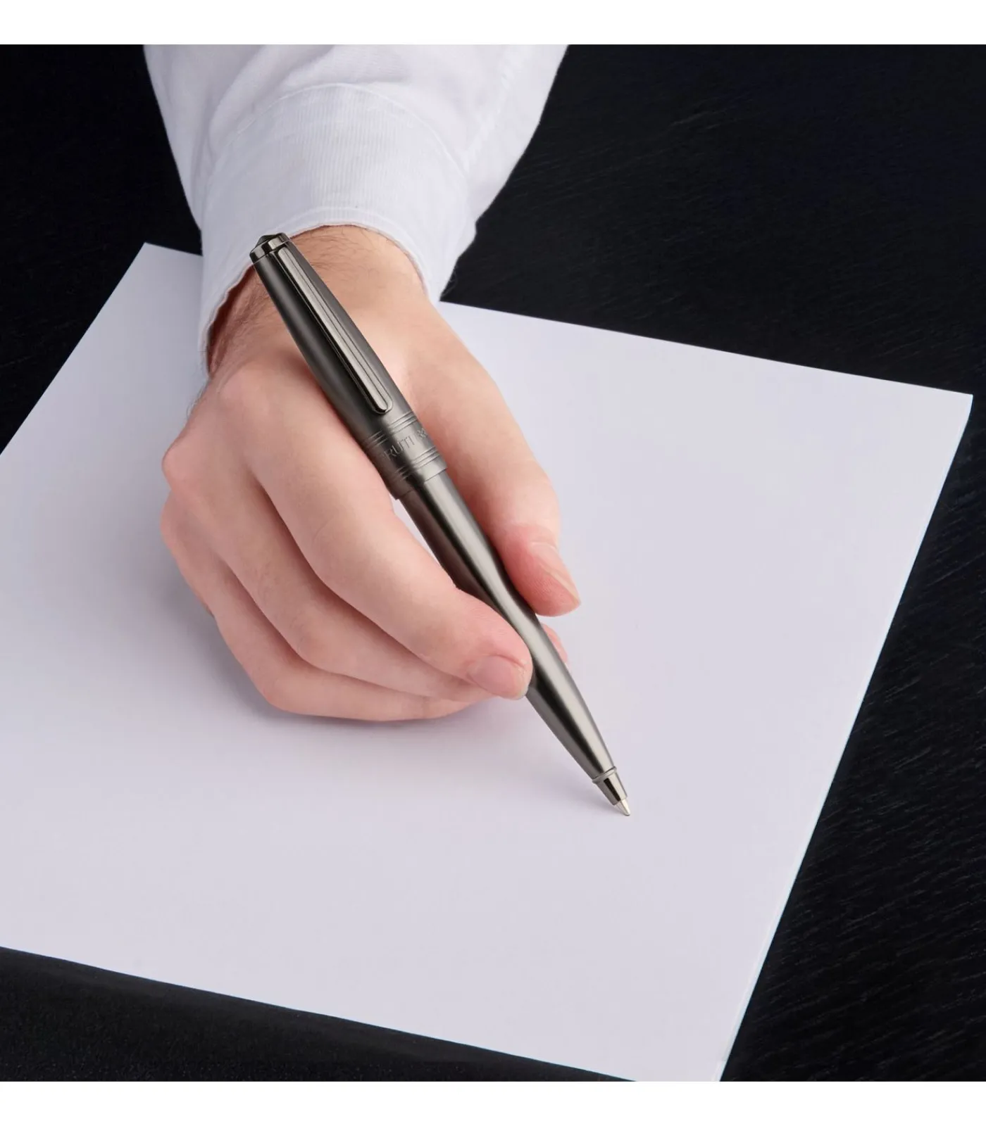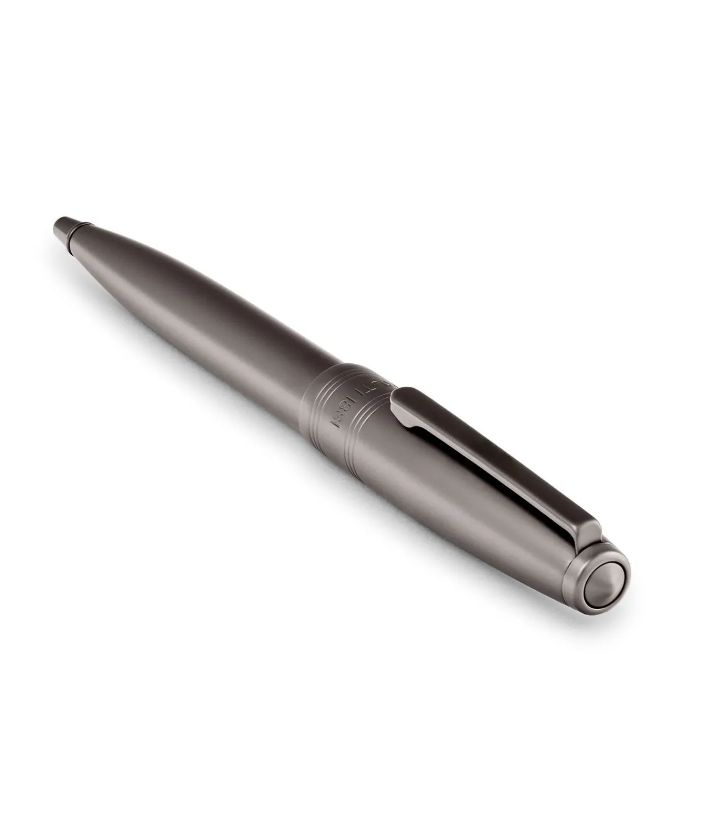 Maak kennis met de City–serie van Cerruti 1881, een nieuwe lijn schrijfinstrumenten die wordt gedefinieerd door ingetogen raffinement en modern design. Deze balpen heeft een matte textuur en een geometrisch, actief geïnspireerd spel met gegraveerde strepen rond het logo, en belichaamt een minimale en eigentijdse esthetiek. De matte gun metal afwerking in combinatie met gun trims versterkt de slanke en verfijnde look, waardoor het een essentieel accessoire is voor elke professionele of persoonlijke omgeving. Dimensions: DIA.13/H.143 mm, Material: Brass,Matt plated