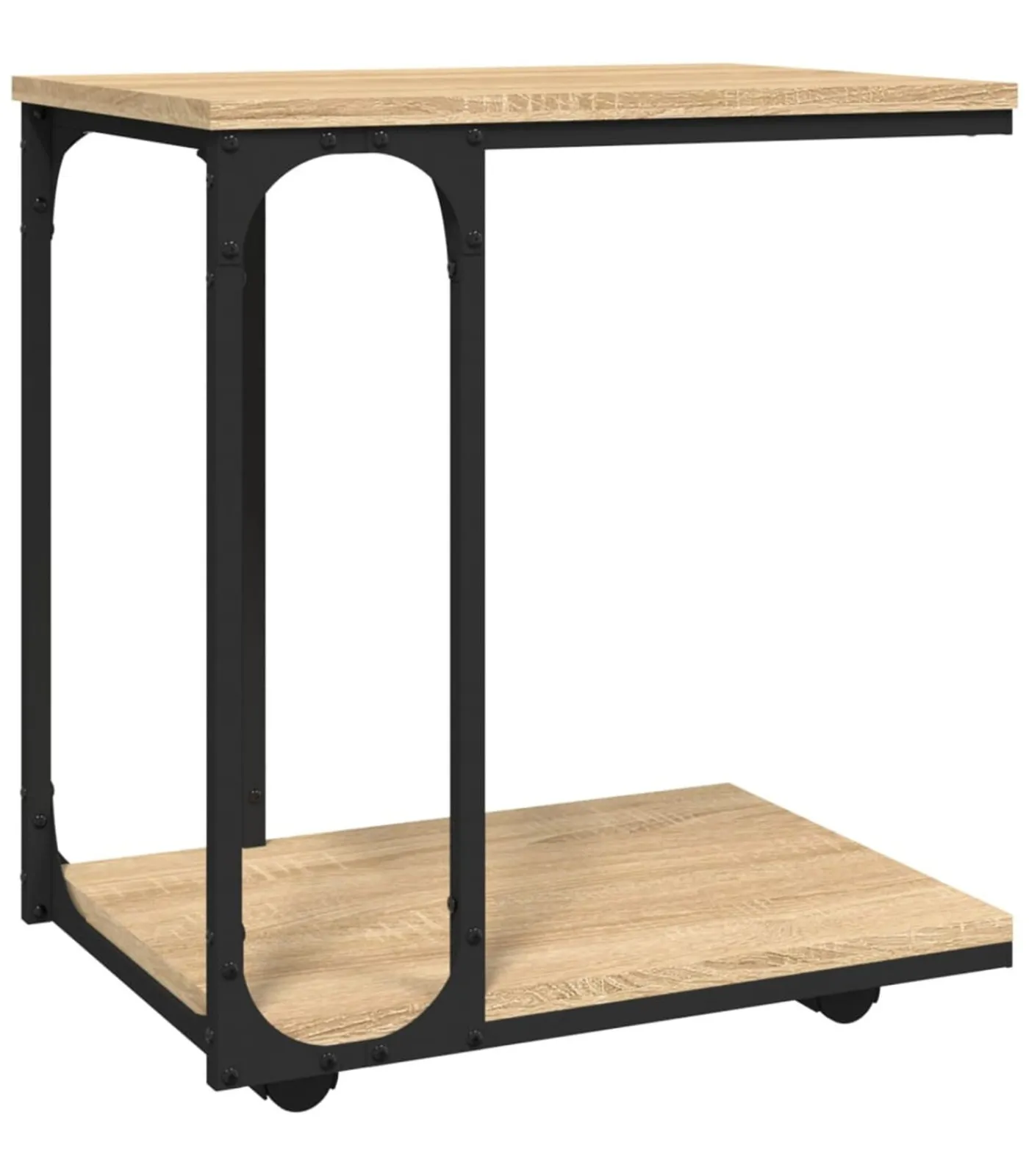 C–vormig ontwerp: dankzij het C–vormige ontwerp kun je het onderste deel van de tafel eenvoudig onder banken, bedden, tafels en ligstoelen plaatsen. Hierdoor is hij ruimtebesparend en handig in gebruik.