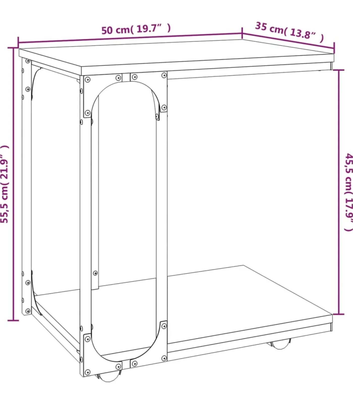 Eenvoudig te verplaatsen: de tafel kan dankzij de draaibare wielen heel eenvoudig op de gewenste plek worden neergezet. 2 van de wielen zijn vergrendelbaar, waardoor de bijzettafel op zijn plek blijft staan en hij stabieler is.