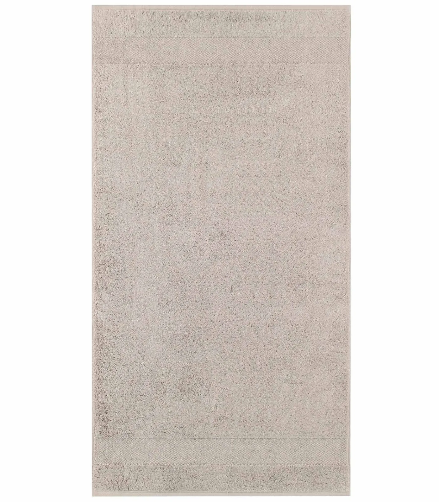 Eenkleurige Villeroy & Boch douchehanddoek met subtiele reliëfstrepen en hanger. Hoogwaardige, strak geweven badstof van 100% katoen. Gemaakt in Duitsland.