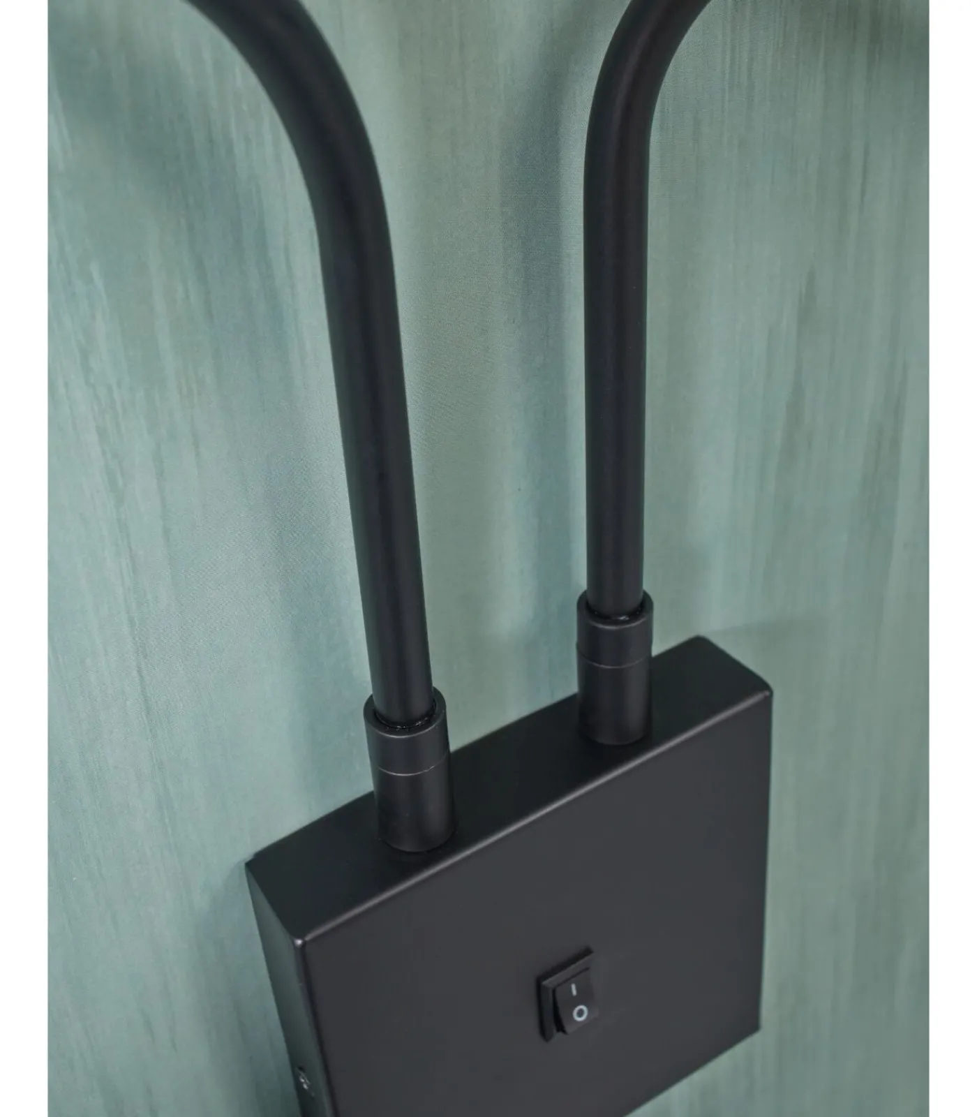 Dompel uzelf onder in een wereld van comfortabel lezen met de Bremen wandlamp. Dit functionele en elegante ontwerp heeft een stevig ijzeren frame met een prachtige matte zwarte afwerking. De twee verstelbare kappen kunt u precies richten waar u licht nodig hebt, perfect voor het creëren van een warm en uitnodigend leeshoekje. Met een formaat van 130x60x49cm is dit een opvallende lamp die naadloos integreert in uw interieur. Met een handige schakelaar bovenop het frame biedt deze lamp zowel stijl als functionaliteit voor uw ruimte.