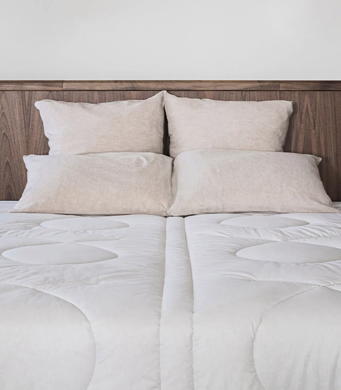 Dit dekbed is jullie idee: we hebben naar jullie verwachtingen geluisterd en dit wonder van comfort ontworpen voor de vele koppels die niet dezelfde koude voeten hebben. Daarom hebben we het gevuld met Alpine wol, zo ademend en zo comfortabel, op verschillende manieren: warmer aan de linkerkant, lichter aan de rechterkant… of het tegenovergestelde, de keuze is aan jou! Omring jezelf met welzijn op je eigen manier…