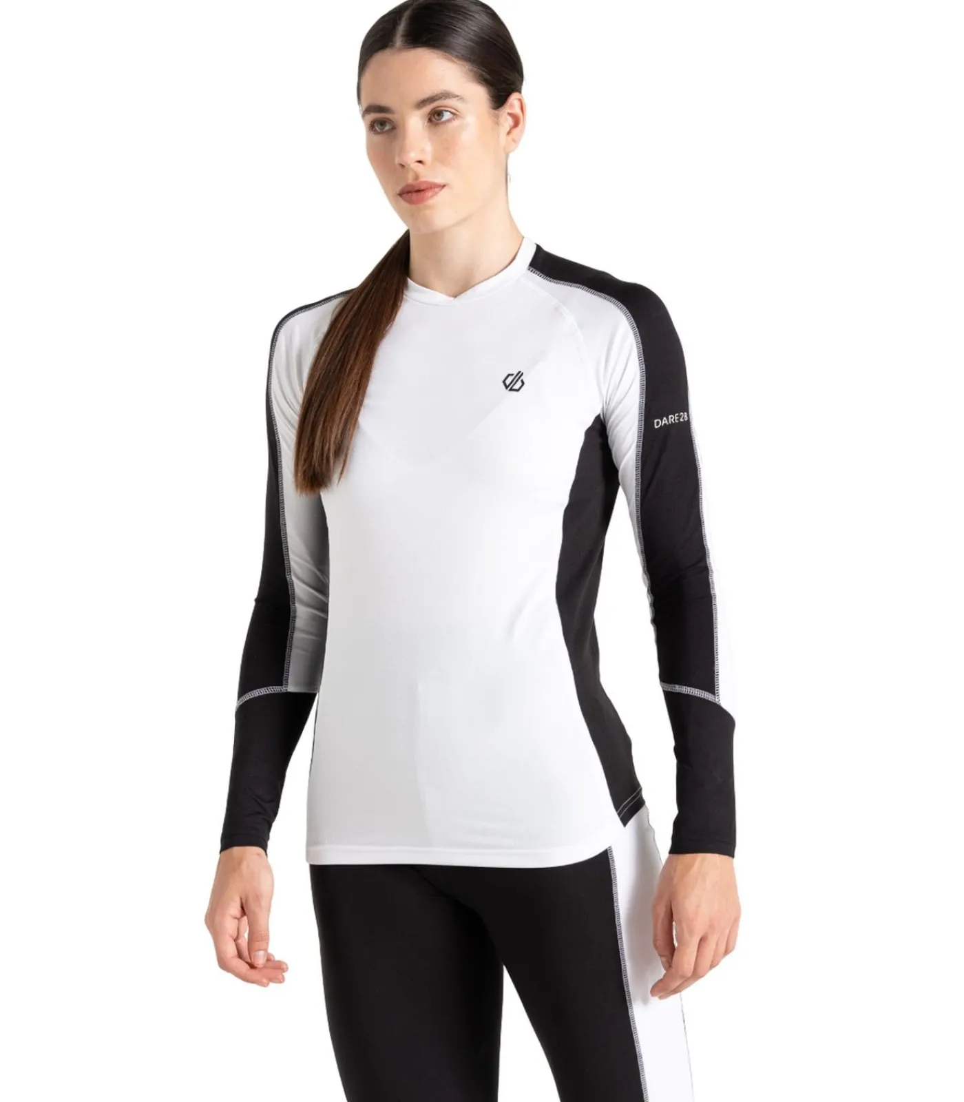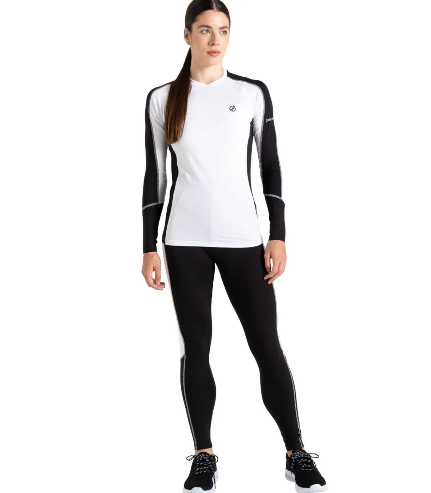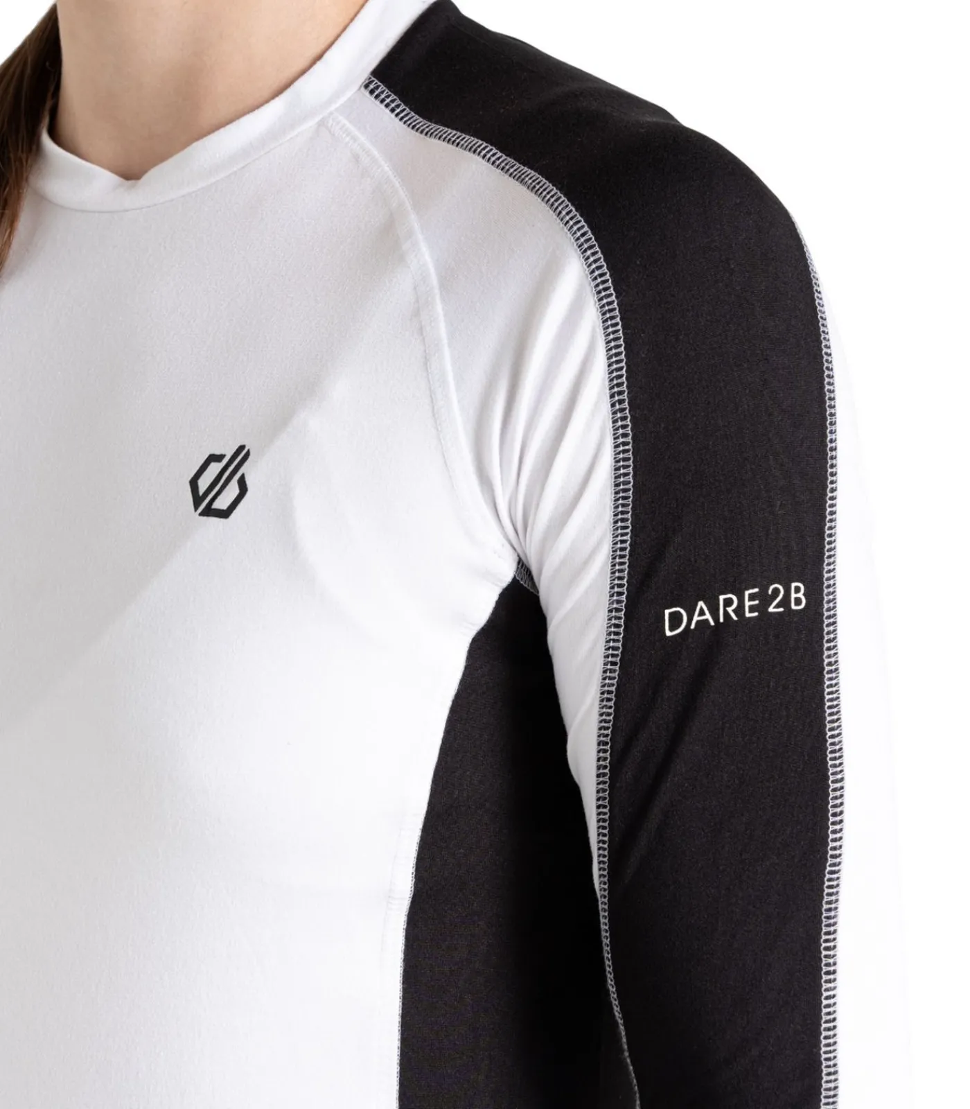 Dare 2B EXCHANGE III basislaag zwart is een complete sportswearset, die gemaakt is van polyesterstof. Het ontwerp van dit setje toont het eilandje–logo en is geïnspireerd op eerlijk eilandje. De hals van deze sportswearset is crew neck, en heeft lange mouwen. De technologie van de stof biedt antibacteriële eigenschappen, is vrij van chemische stoffen, vochtafvoerend, geurcontrole, sneldrogend, SeamSmart technologie, thermisch. Het setje bestaat uit een zwembroek en een top. De maten worden aangeboden in 6 VK (30 in), 8 UK (32 in), 10 VK (34 in), 12 VK (36 in), 14 VK (38 in), 20 VK (45 in), 18 VK (43 in), 16 VK (40 in).