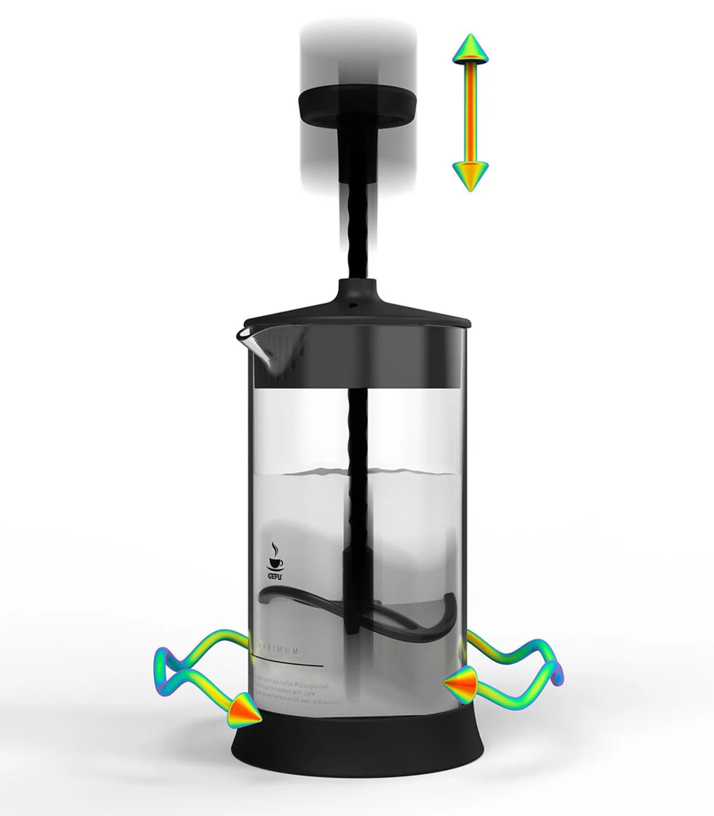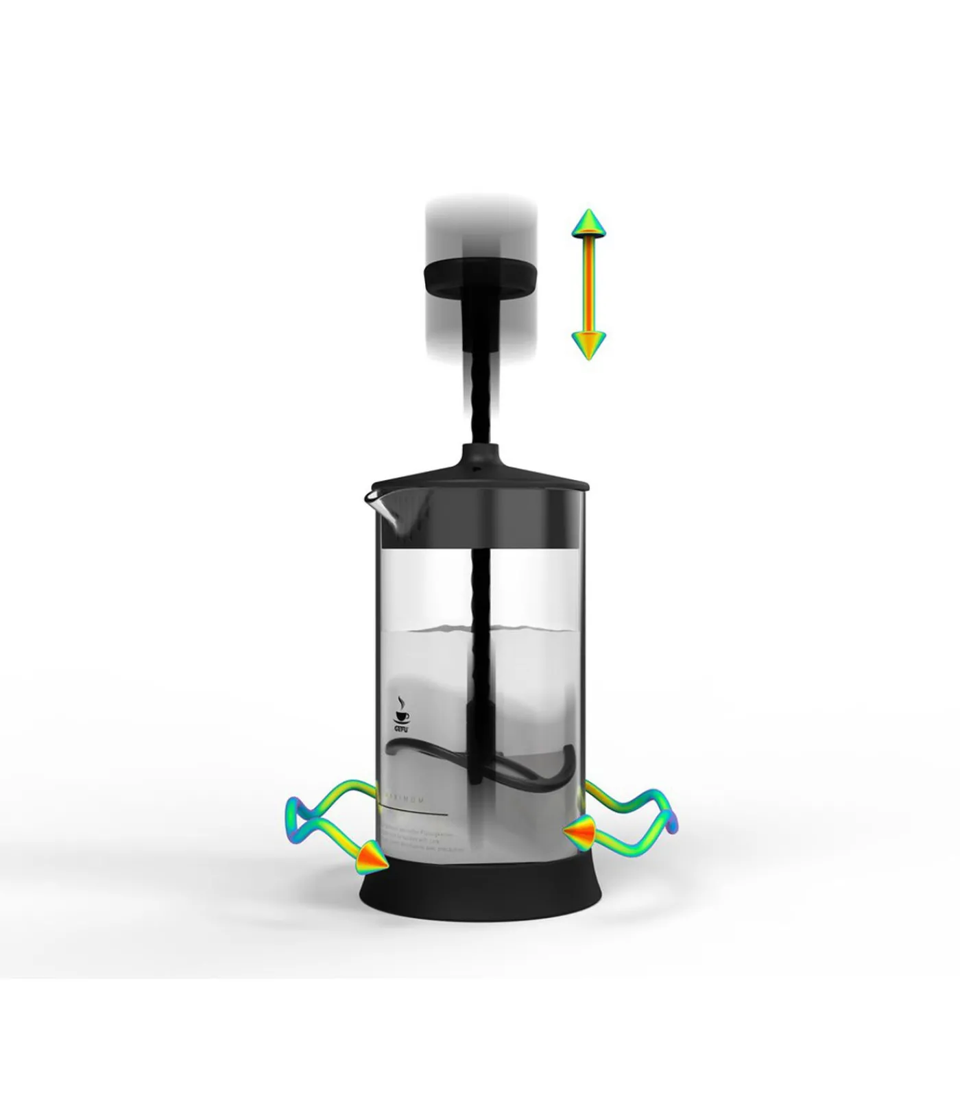 • meerdimensionaal, innovatief wervelmechanisme voor een vaste, homogene schuimconsistentie• golfvormig zeefelement met fi jne mazen• reservoir op basis van mondgeblazen, hittebestendig borosilicaatglas, ook geschikt voor de magnetron• uitgiettuit• in het deksel geïntegreerde uitgieter voor de scheiding van melk en schuim• slipvrije sokkel van silicone• schaalverdeling van max. vulvolume: 270 ml