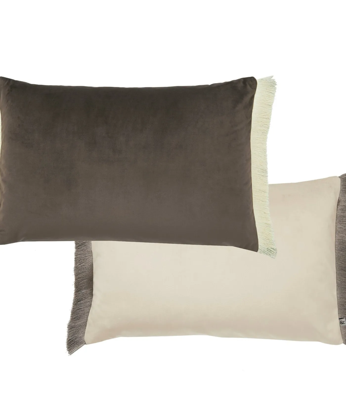 Laat je verleiden door ons puur chocoladebruine kussen Fringe Opulence. Met zijn crèmewitte fluweel met rijke chocoladebruine franjes en diepbruine achterzijde met crèmewitte franjes, is dit kussen de neutrale factor die je huis nodig heeft.