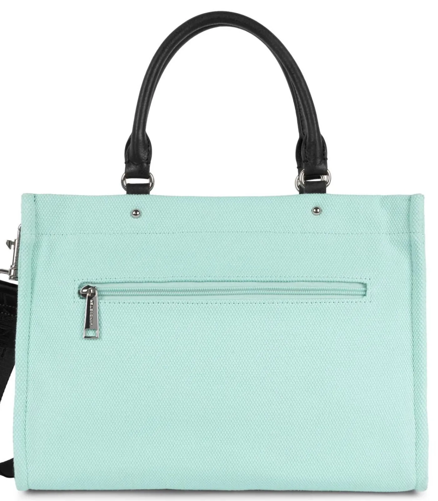 Deze handtas is gemaakt van katoen. Hij heeft een groot buitenvak en een buitenvak met rits. Hij kan met de hand, kruislings of over de schouder worden gedragen.