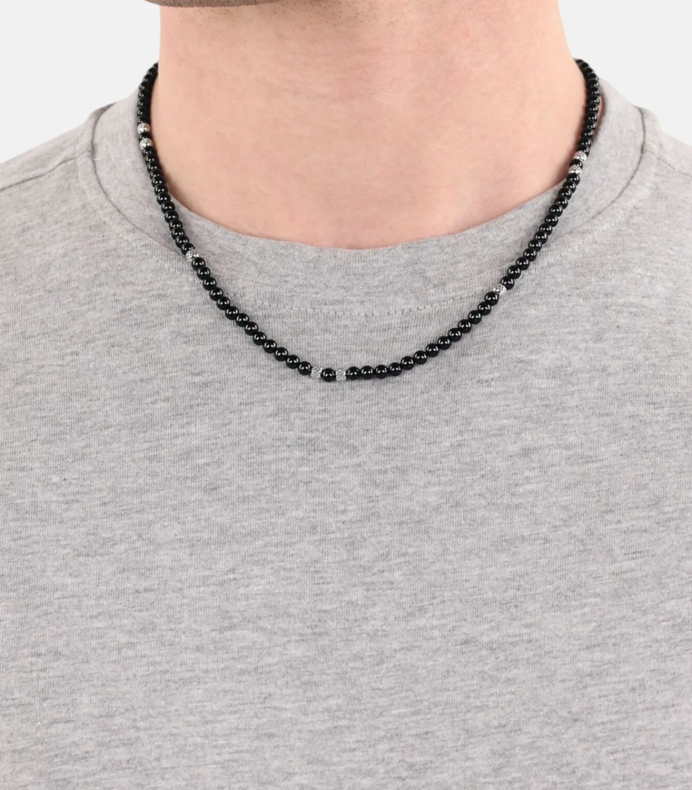 Dit sieraad accentueert je outfit op een slimme manier – halsketting voor heren. Het echte juwelenmerk Amor staat voor juwelen die gemaakt zijn volgens de hoogste normen. Fijn geselecteerde materialen en elegante ontwerpen maken het assortiment uniek. De ketting met hanger is gemaakt van roestvrij staal en is perfect om elke dag te dragen of voor speciale gelegenheden. De ketting is 50+5 cm lang en bestaat uit een klassieke bolletjesketting. Fonkelende agaatsteentjes zorgen voor een bijzondere highlight. Een praktische karabijnsluiting maakt het aan– en uitdoen gemakkelijk. De sieraden van Amor worden geleverd in een aantrekkelijke verpakking die ideaal is om te bewaren en als cadeau.
