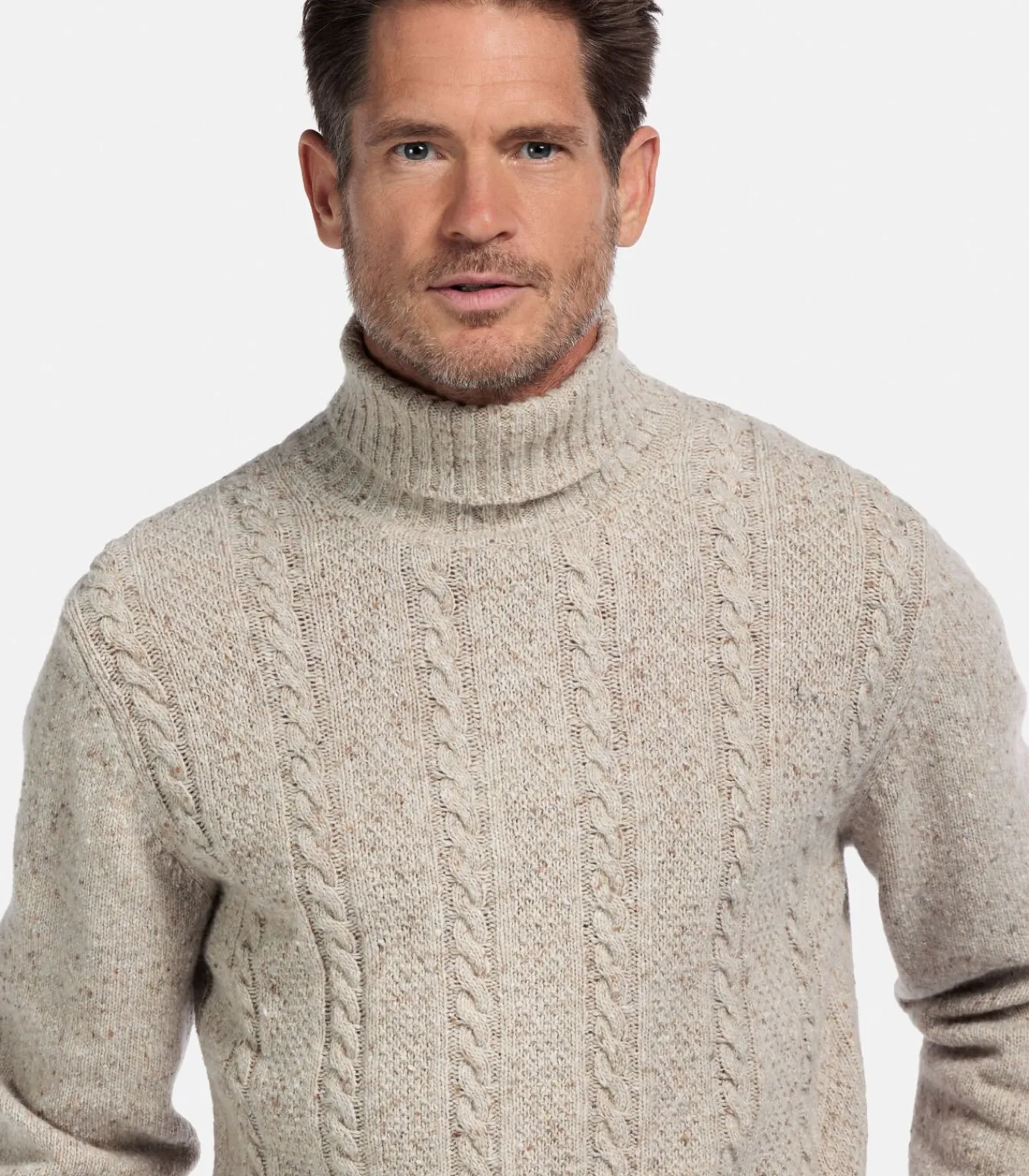 Deze regular fit coltrui combineert een tijdloos kabelpatroon met een moderne, gemeleerde look. Gemaakt van een warme wolmix die zacht aanvoelt en perfect is voor koude dagen. Stijlvol te dragen op een jeans of chino voor een comfortabele winteroutfit. Artikelnummer 528551–817