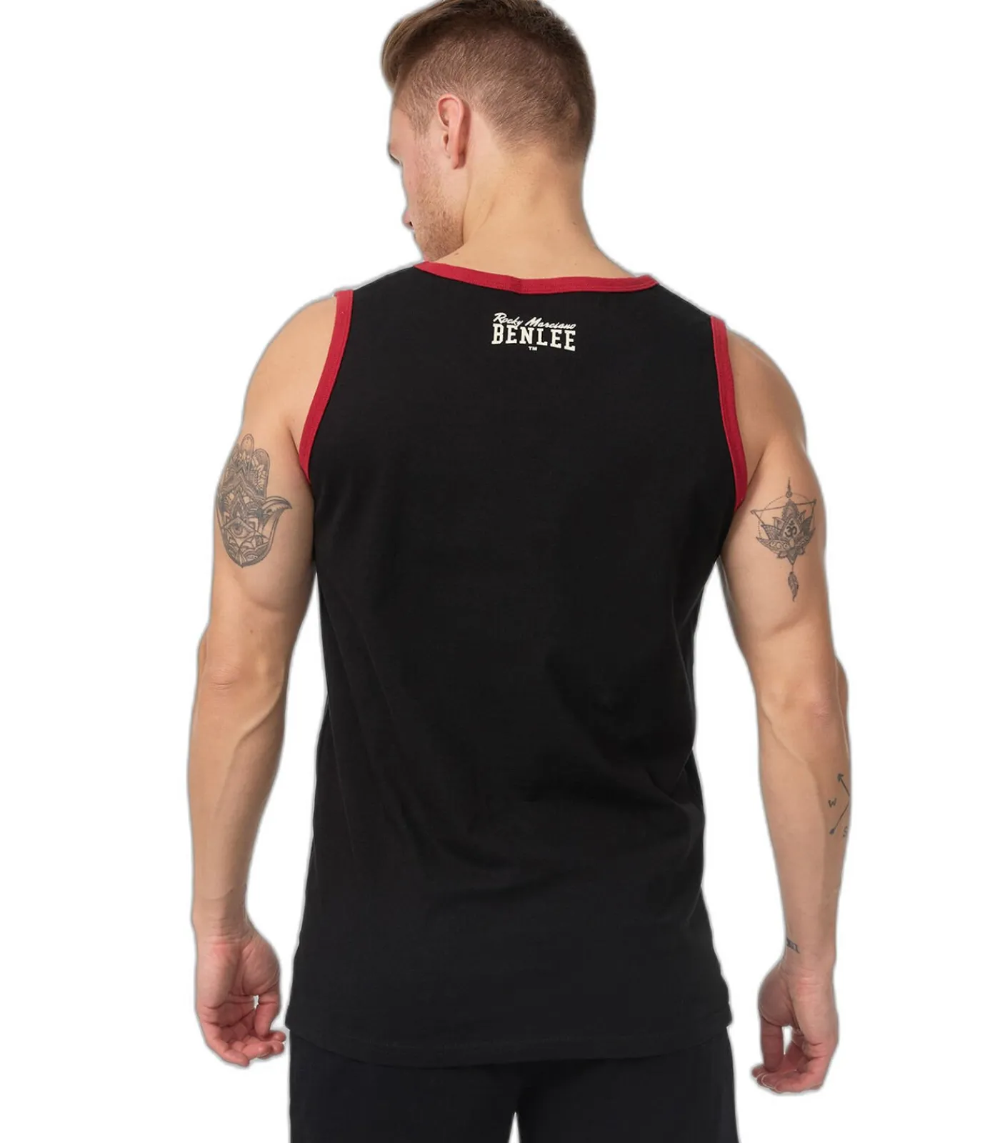 Style description: Tanktop met klassieke ronde hals en contrasterende print op de voorkant. De mouwuiteinden en halslijn zijn in contrasterende kleur.