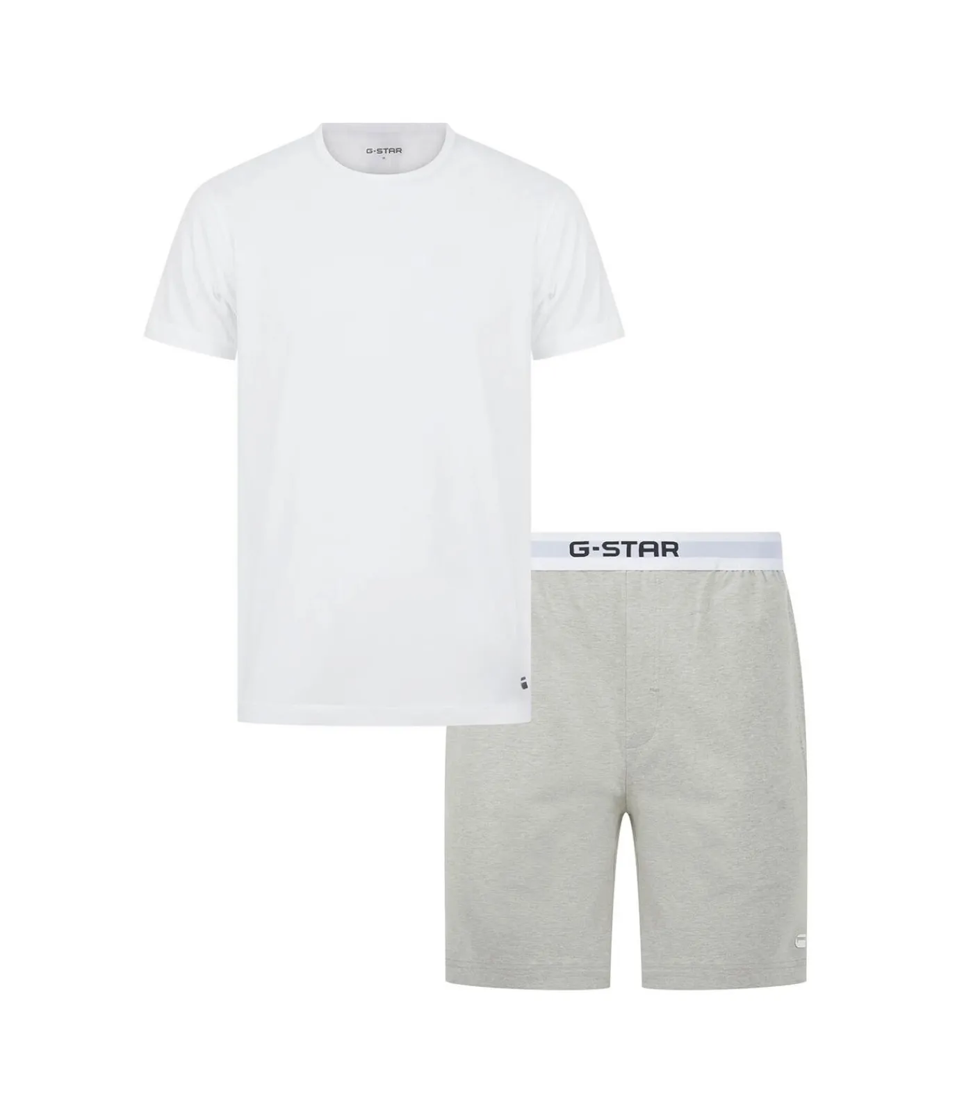 G–STAR pyjama voor heren. Korte pyjamaset van een comfortabele katoenmix. Shirt met korte mouwen en ronde hals en korte broek met logo–tailleband.
