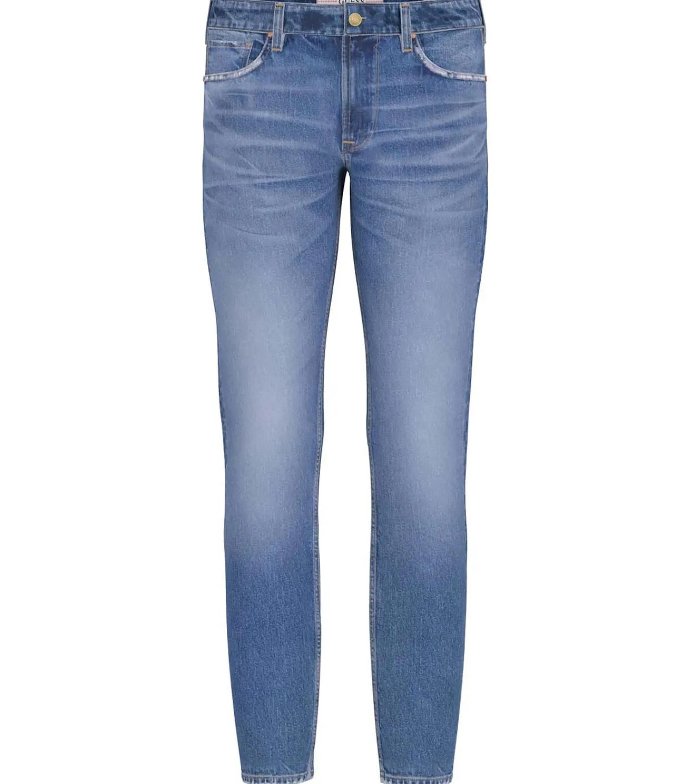 Kleur: Dumont Pasvorm: Slim fit Sluiting: Knoop en ritssluiting Details: Stretch denim met stone wash effect, vijf zakken, Guess logo geborduurd op de achterkant Gebruik: Ideaal voor een casual en moderne look, perfect te combineren met sneakers of mocassins voor informele gelegenheden of dagen van ontspanning.