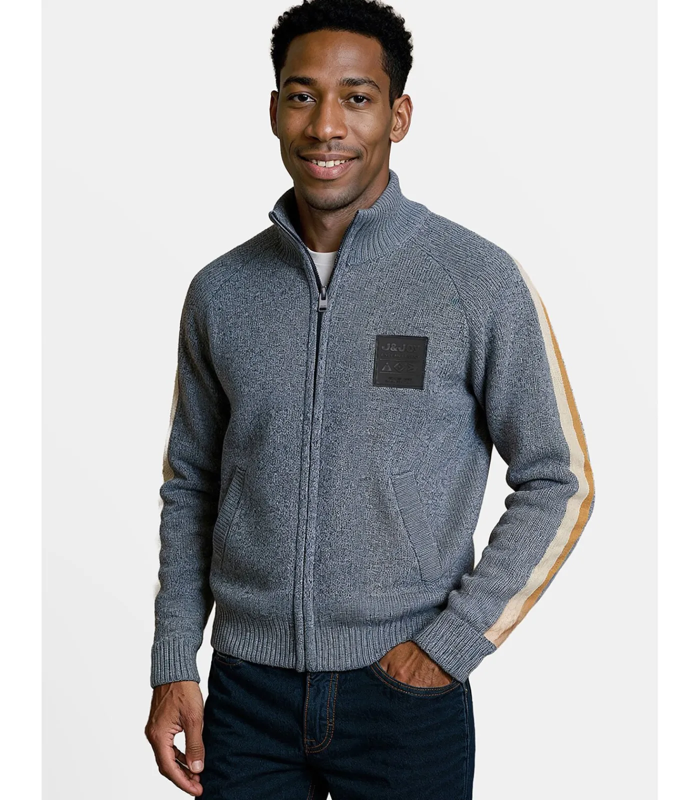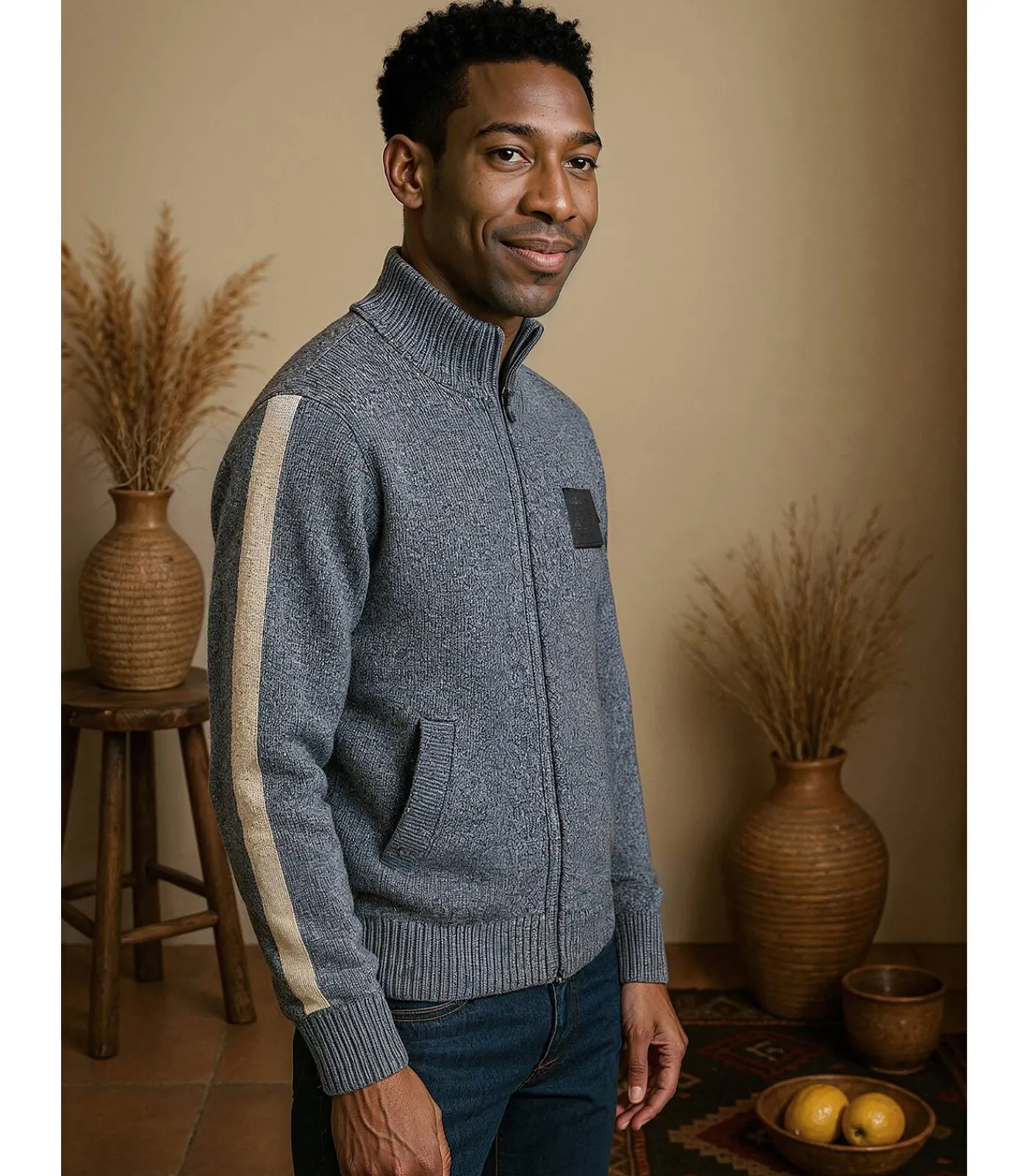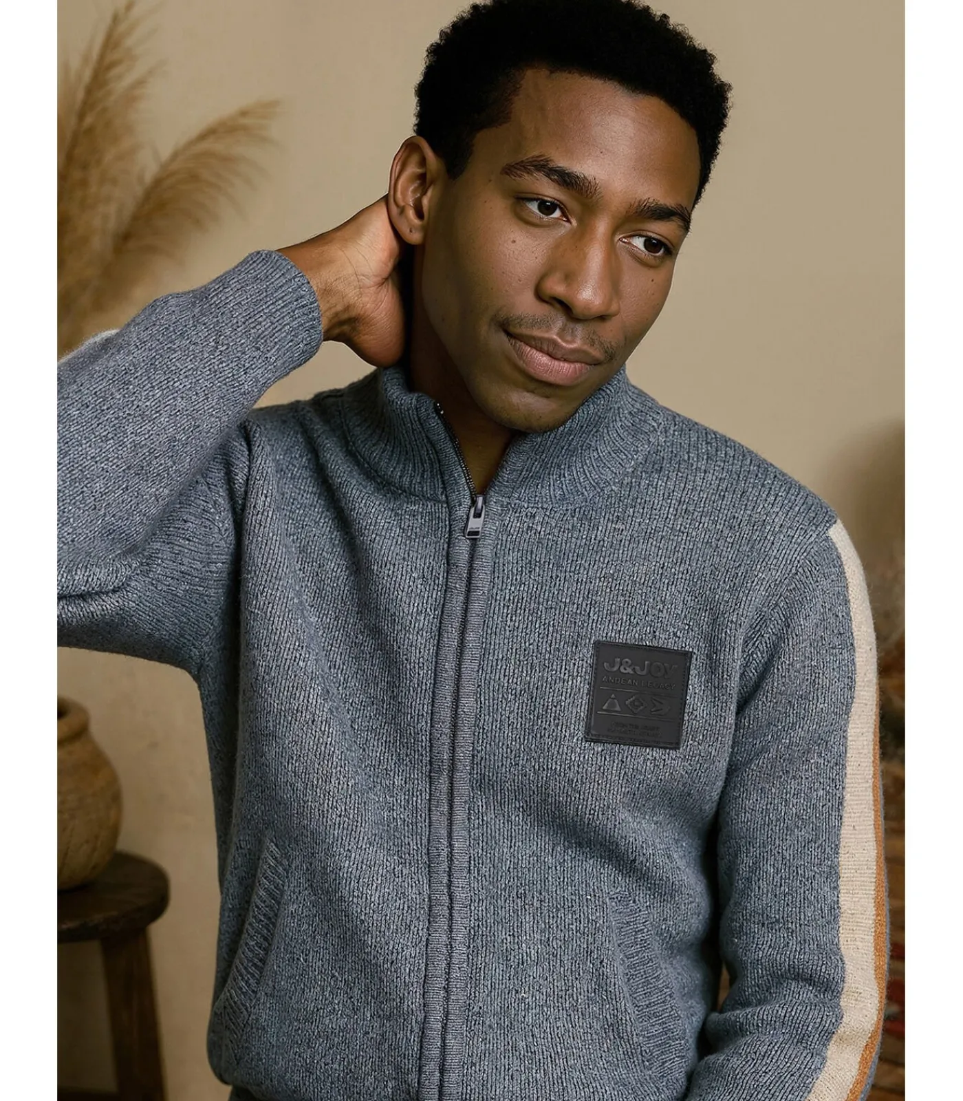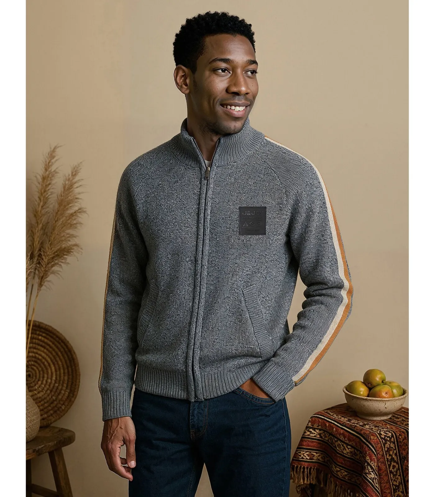 Ontdek de Laguna Parón herentrui, een must–have dit seizoen, geïnspireerd op de schoonheid van marineblauw en verrijkt met kleurrijke strepen voor een dynamische look. Gemaakt van een mix van 39% polyester, 33% gerecycled katoen, 19% acryl en 9% nylon, biedt deze trui zowel warmte als comfort. De rechte snit en gemêleerde grijze kleur zorgen voor een moderne touch, terwijl de contrasterende strepen op de mouwen een sportieve touch toevoegen. De ritssluiting met contrasterende afwerkingen, de opstaande kraag en de elastische geribbelde randen zorgen voor een casual en trendy look. De lange mouwen, twee steekzakken en het uitgegumde J&JOY–logo op het hart zijn praktische en authentieke details. Bestel nu en ga voor een stijl die zowel casual als verfijnd is.