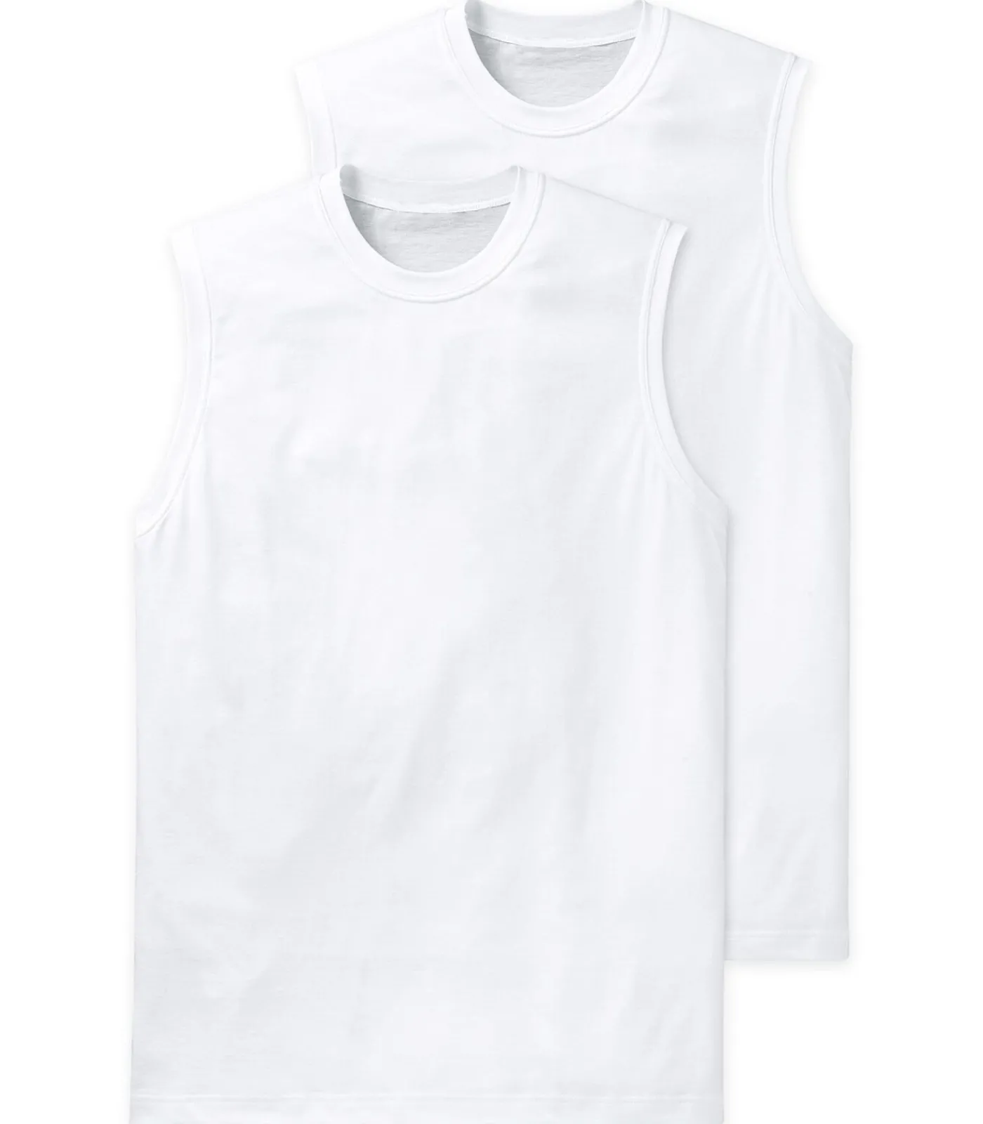Twee mouwloze shirts voor heren van SCHIESSER. Met ronde hals, van zacht katoen–jersey, comfortabele pasvorm, hoge vormvastheid, beste kwaliteit.