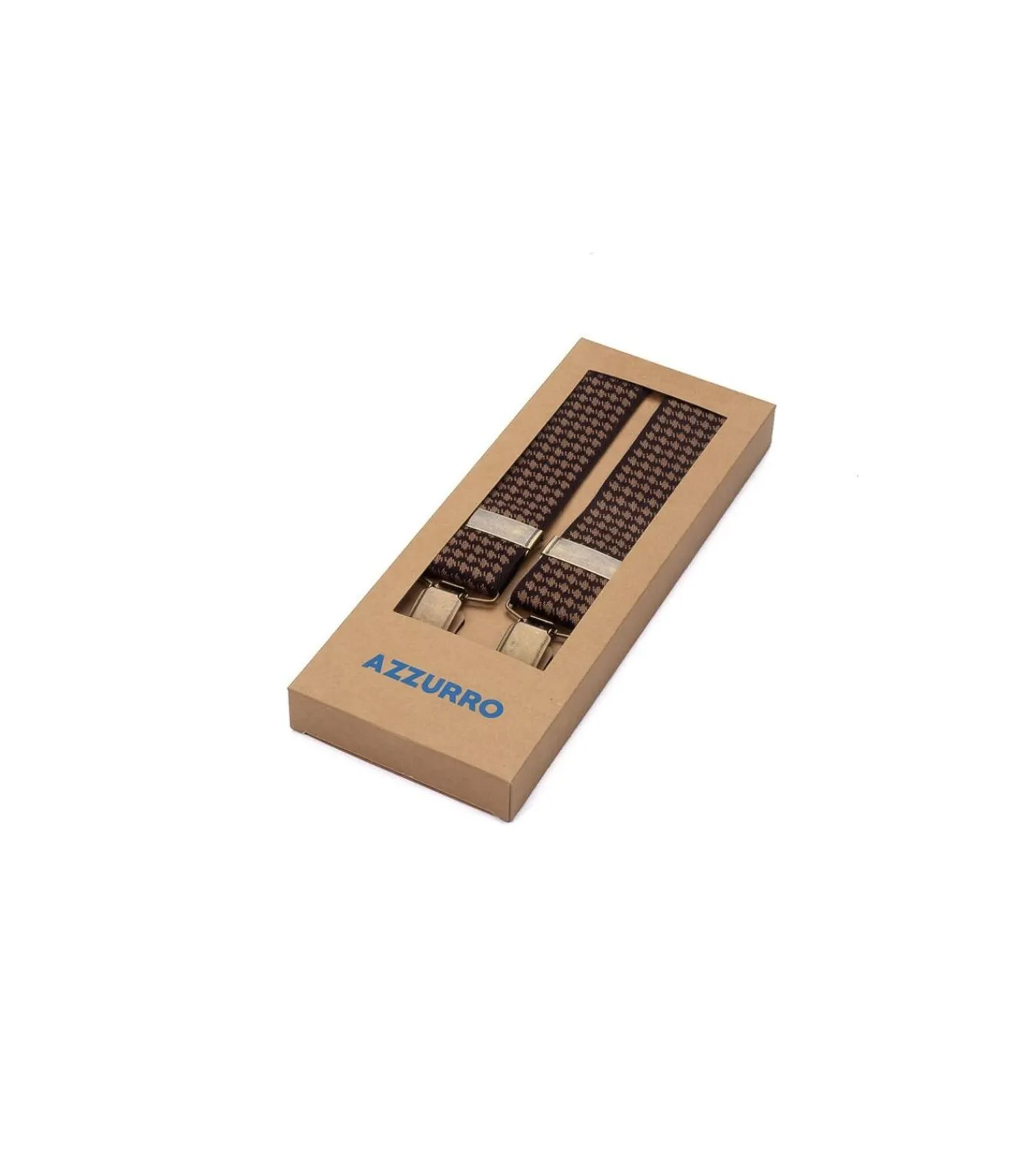 Pied de poule dessin bruin met 4 stevige bronskleurige klemmen.