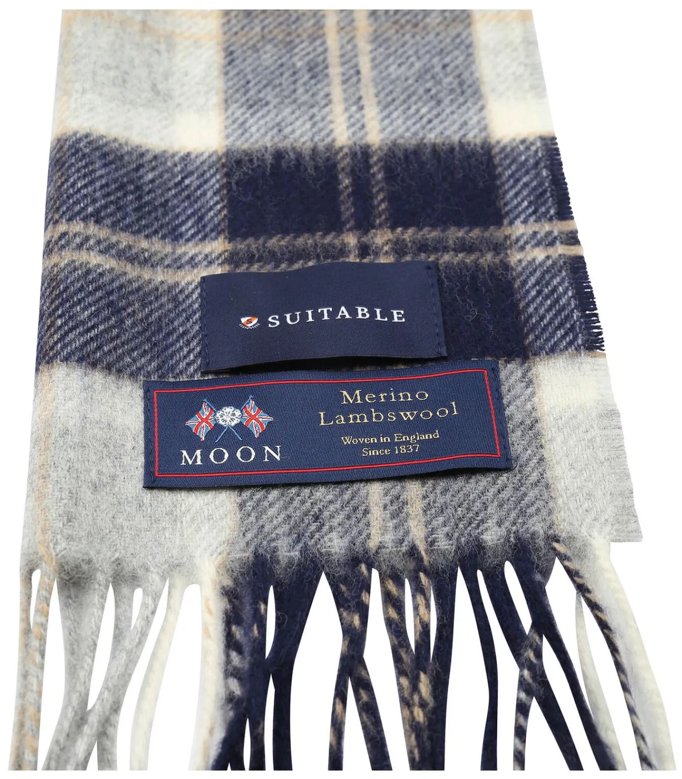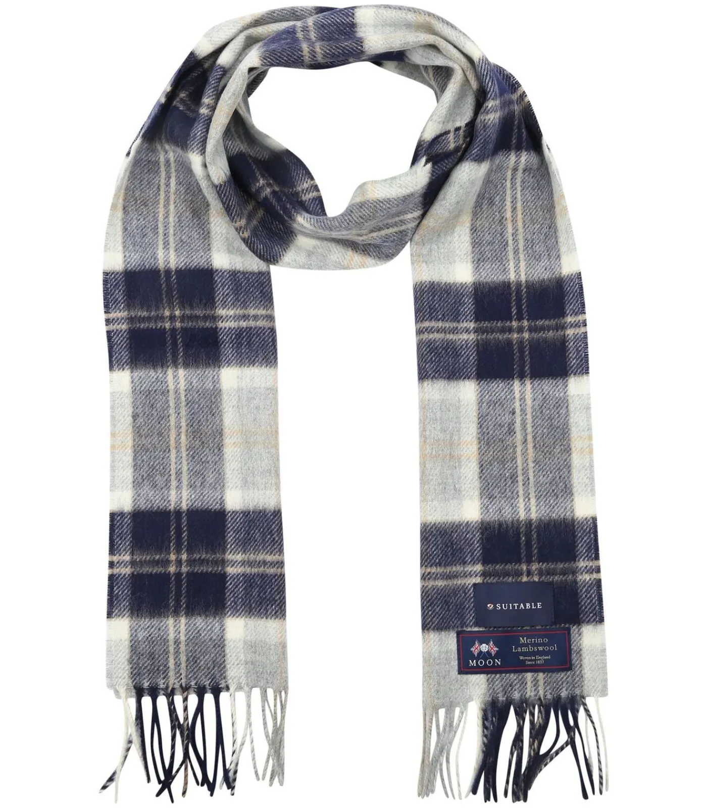 Heren Suitable Sjaal Ruit Merino Wol Blauw Grijs