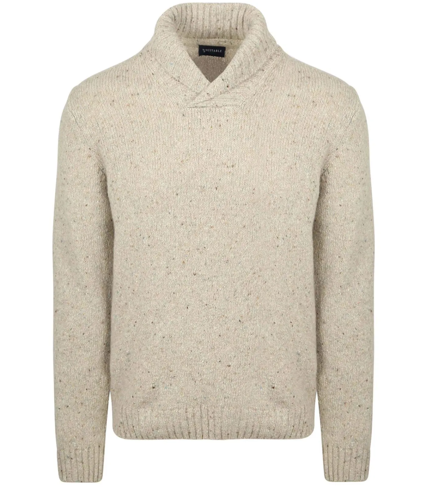 Heren Suitable Trui Shawl Tweed Eco Wool Ecru