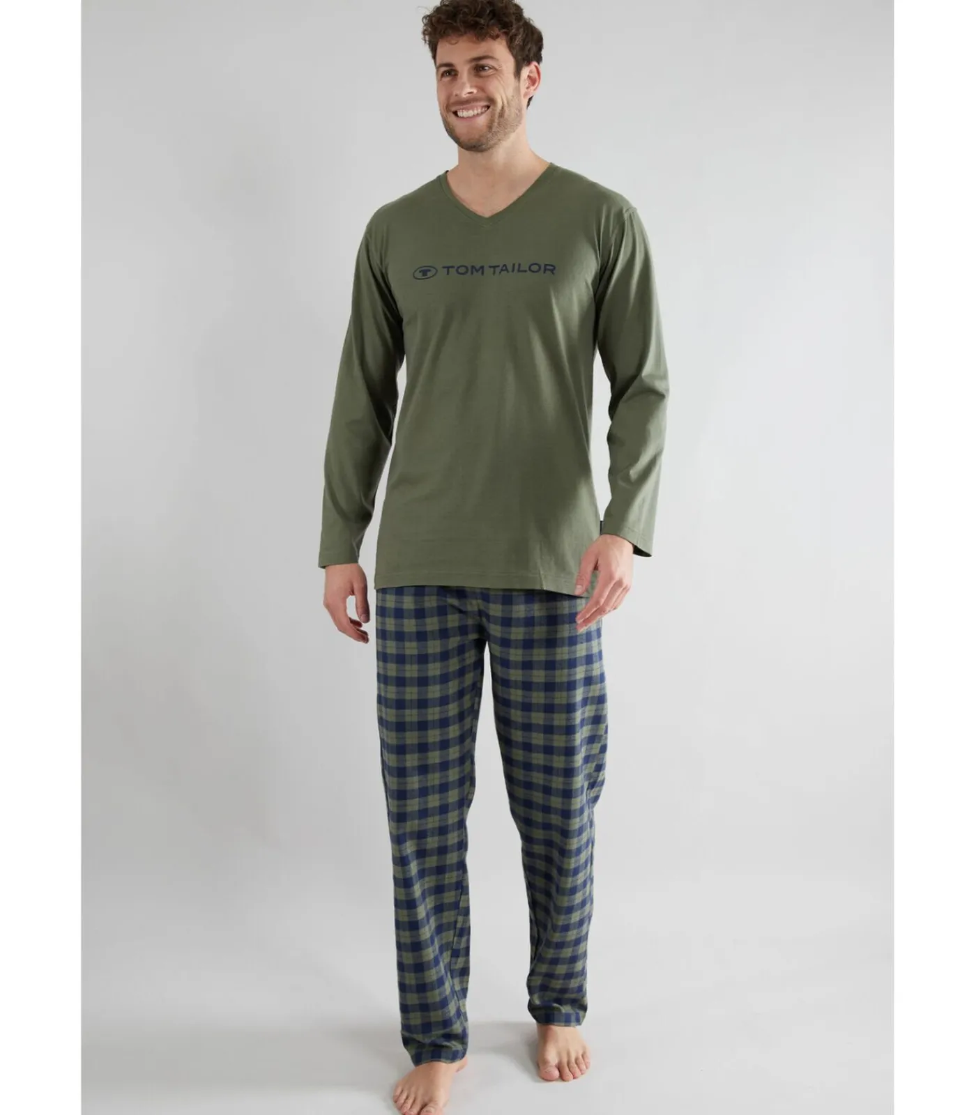 Olijfgroen shirt met lange mouwen en opdruk