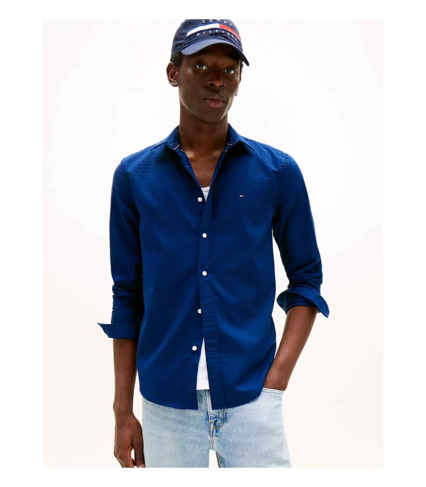 Kleur: Preppy Navy. Samenstelling: 100% katoen. Mouwen: Lang. Halslijn: Semi–gespreide kraag. Pasvorm: Regular Fit. Sluiting: Knoopsluiting aan de voorkant. Details: Dobby stof, afgeronde manchetten met knoop, geborduurde Tommy Hilfiger–vlag op de borst. Gebruik: Perfect voor praktische en verfijnde kleding, geschikt voor zowel casual als semi–formele looks.