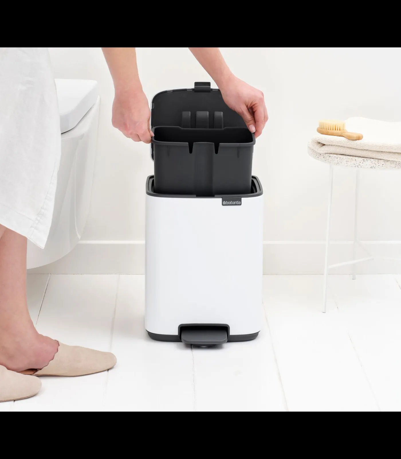 Op zoek naar een afvalemmer die overal past? Dan is de Brabantia Bo Pedaalemmer 7 liter iets voor jou! Dankzij het ruimtebesparende ontwerp zet je deze pedaalemmer makkelijk in een hoekje of tegen de muur. En door de anti–slip onderkant en het anti–kantelblok blijft ‘ie daar ook stevig staan. Je doet het deksel hygiënisch open met het voetpedaal. Liever met de hand? Dat kan ook – gebruik dan het speciale lipje aan het deksel. Zet het deksel in de open stand om gemakkelijk de zak te verwisselen. Wat een bak!