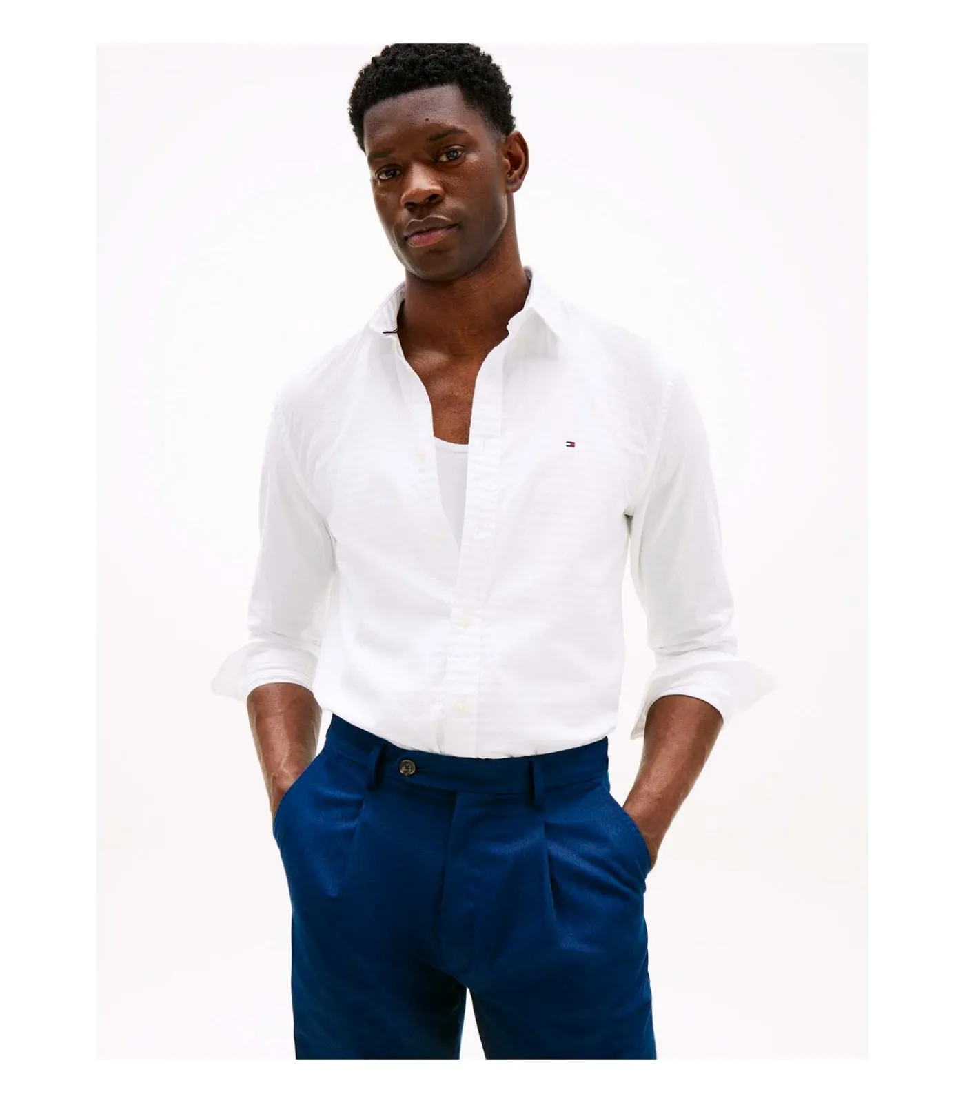 Kleur: Th Optic White. Samenstelling: 100% katoen. Mouwen: Lang. Halslijn: Semi–gespreide kraag. Pasvorm: Regular Fit. Sluiting: Knoopsluiting aan de voorkant. Details: Dobby stof, afgeronde manchetten met knoop, geborduurde Tommy Hilfiger–vlag op de borst. Gebruik: Perfect voor praktische en elegante kleding, geschikt voor zowel casual als semi–formele looks.