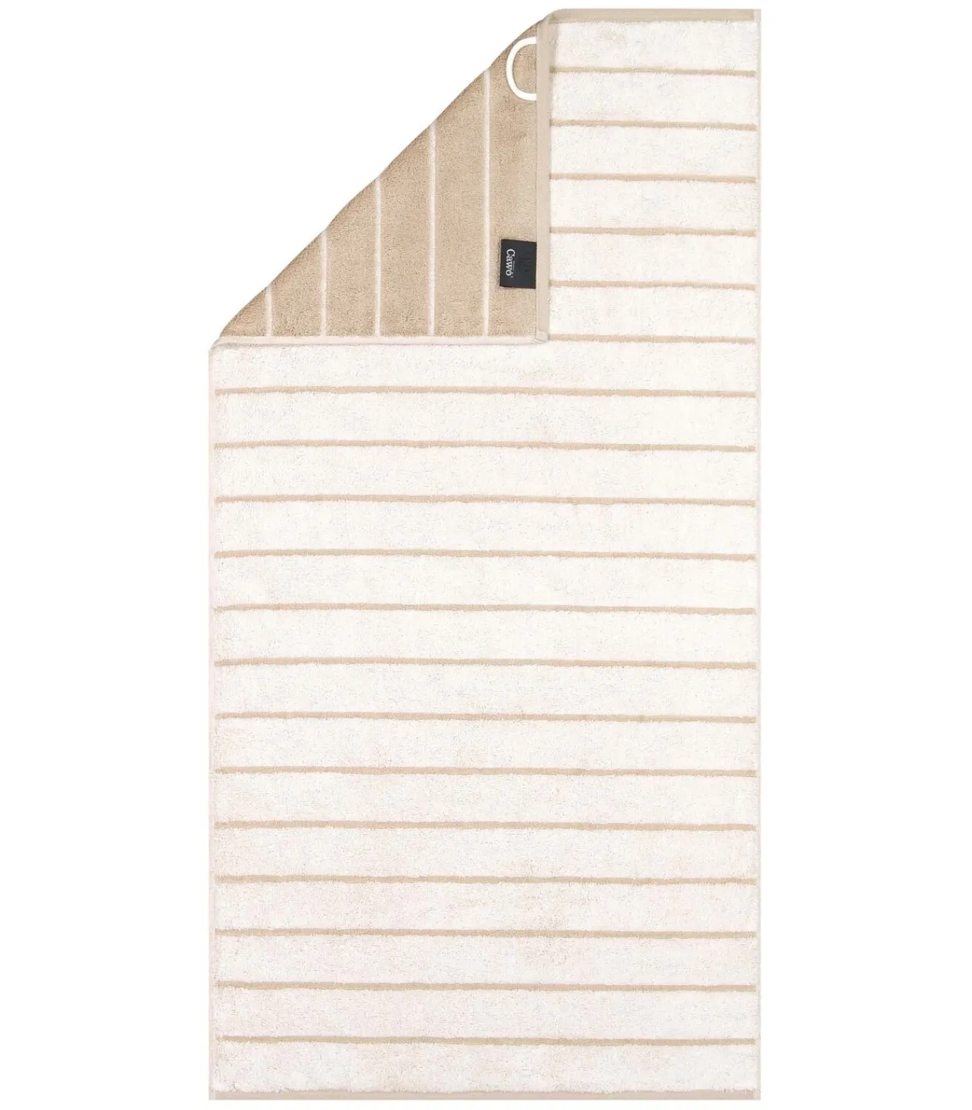 Hoogwaardige handdoek van het merk CAWÖ. Gestreept dessin in omkeerbare look in extra zachte badstof kwaliteit. 100% katoen – huidvriendelijk, onderhoudsvriendelijk, geschikt voor de droogtrommel.