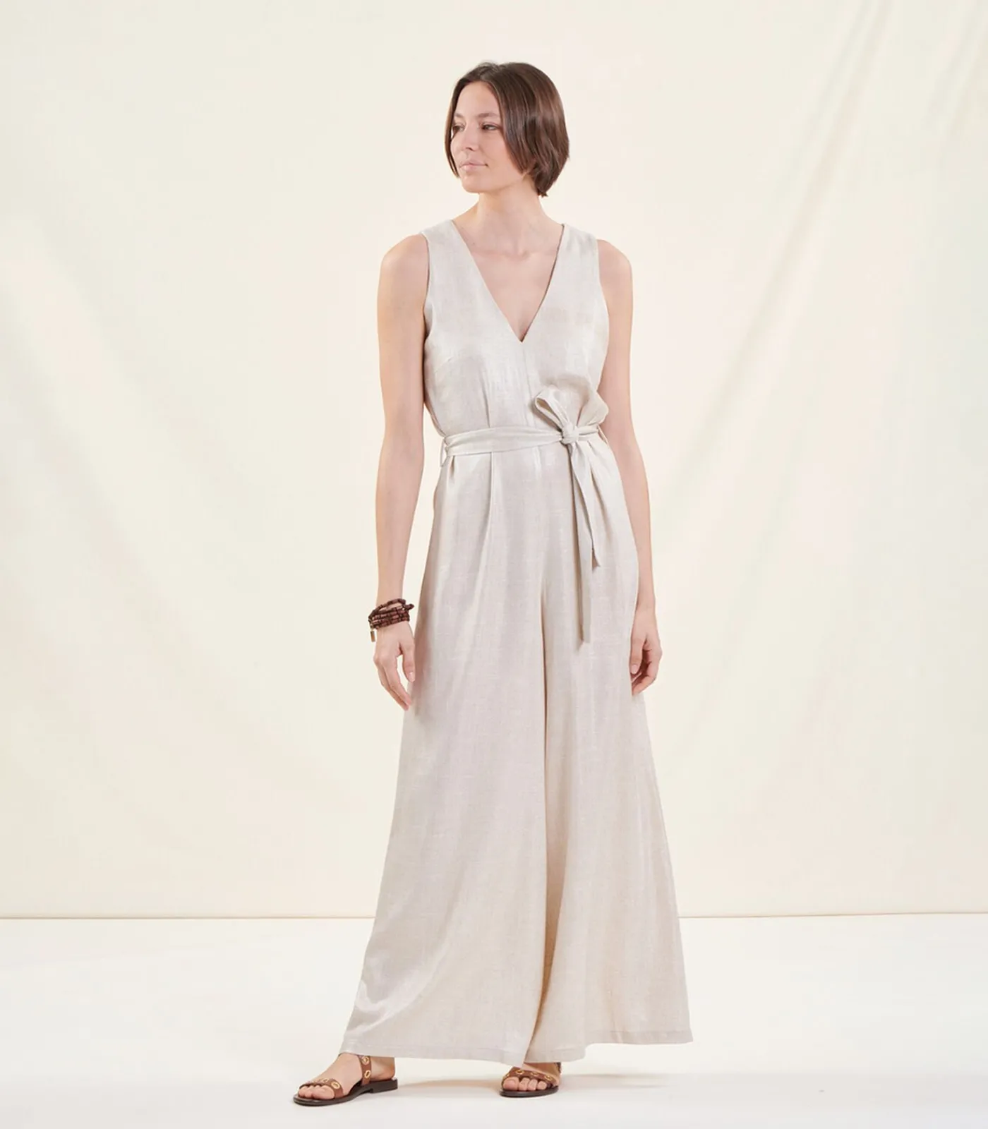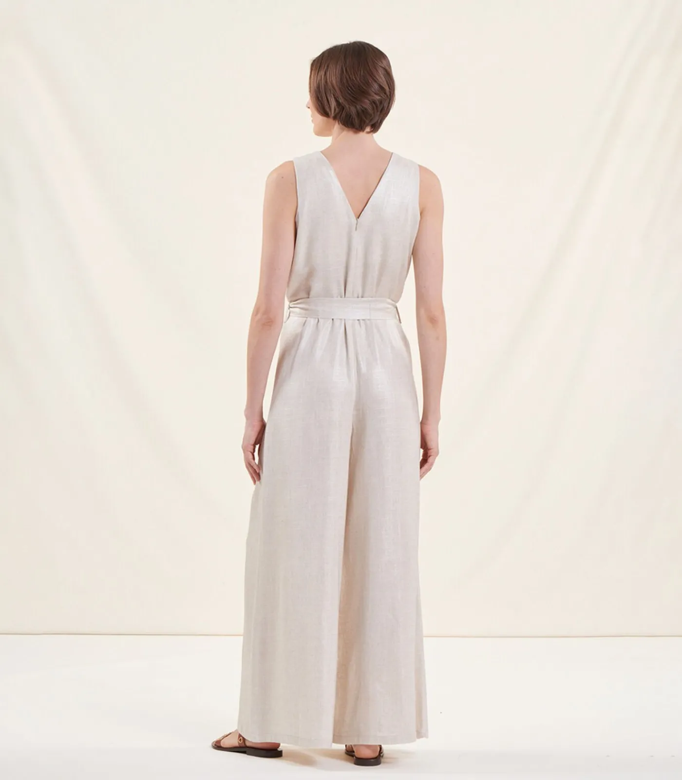 Hot Jumpsuit met V-hals zonder mouwen van linnen DAMES Jumpsuits