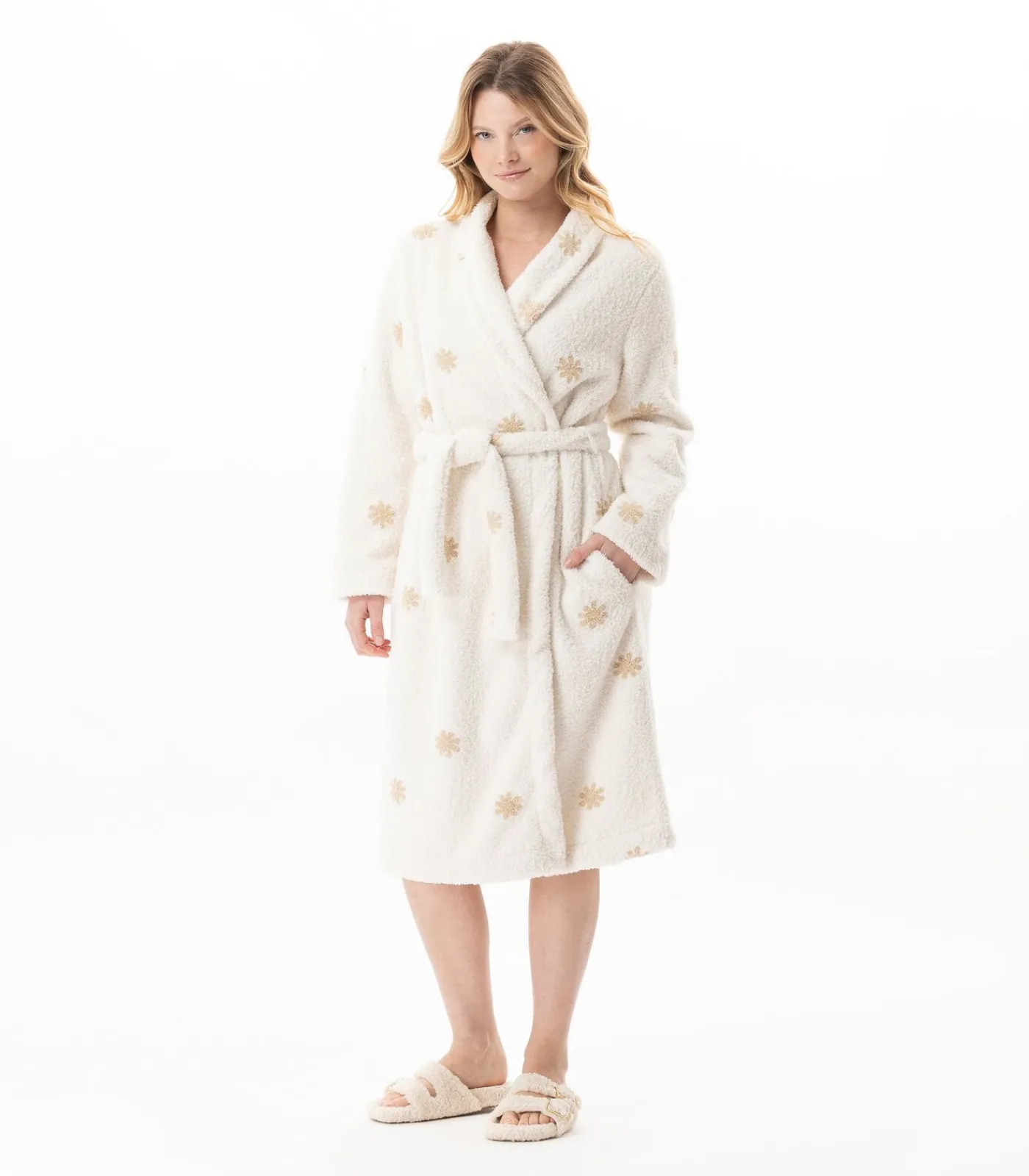 Bij LE CHAT draait de winter om zachtheid en comfort. Fijn geborduurde sterren sieren onze onmisbare wikkelbadjas, die dit seizoen terugkeert in een ultrazacht materiaal, ontwikkeld met onze gespecialiseerde partner in de Loirestreek.
