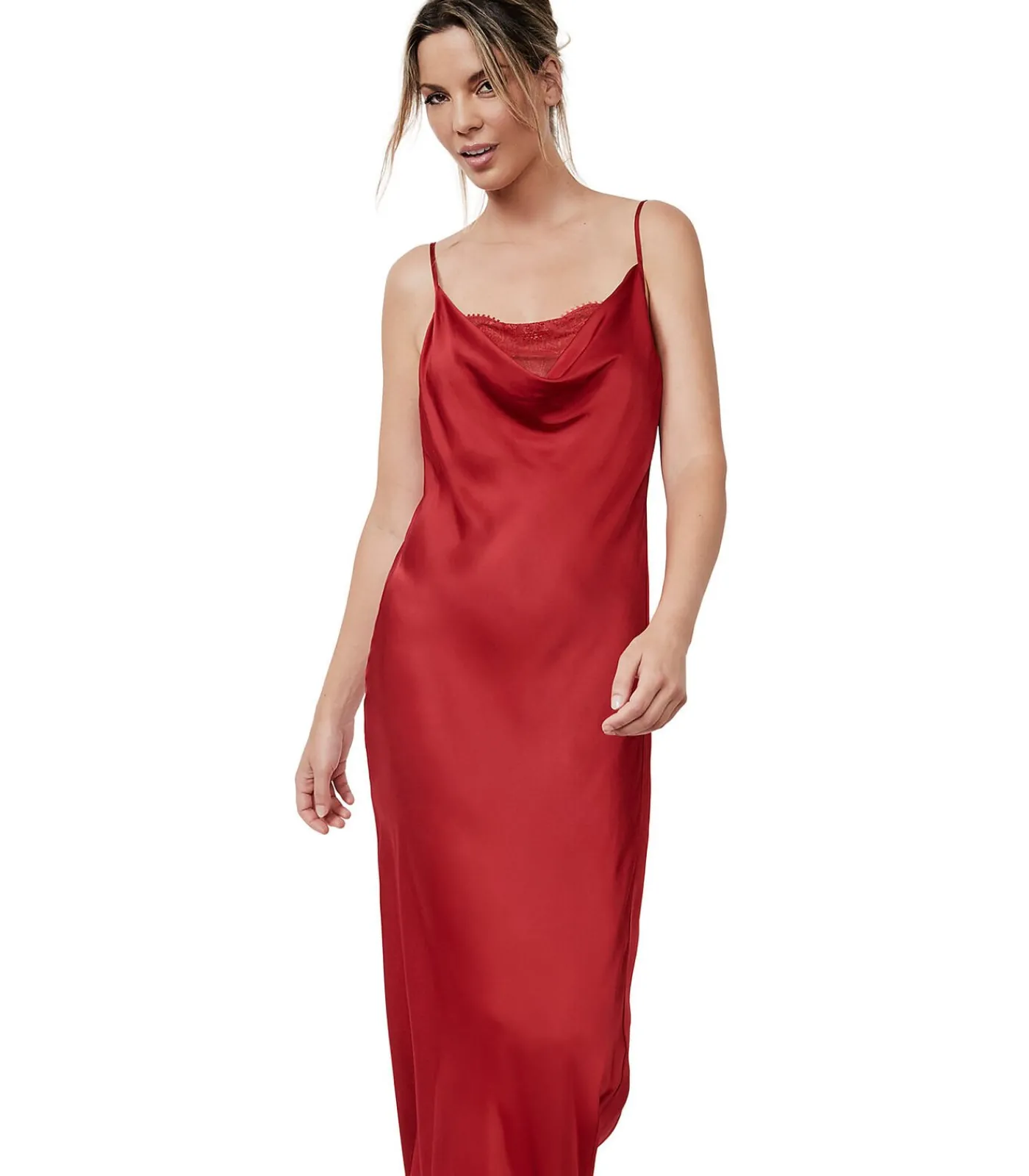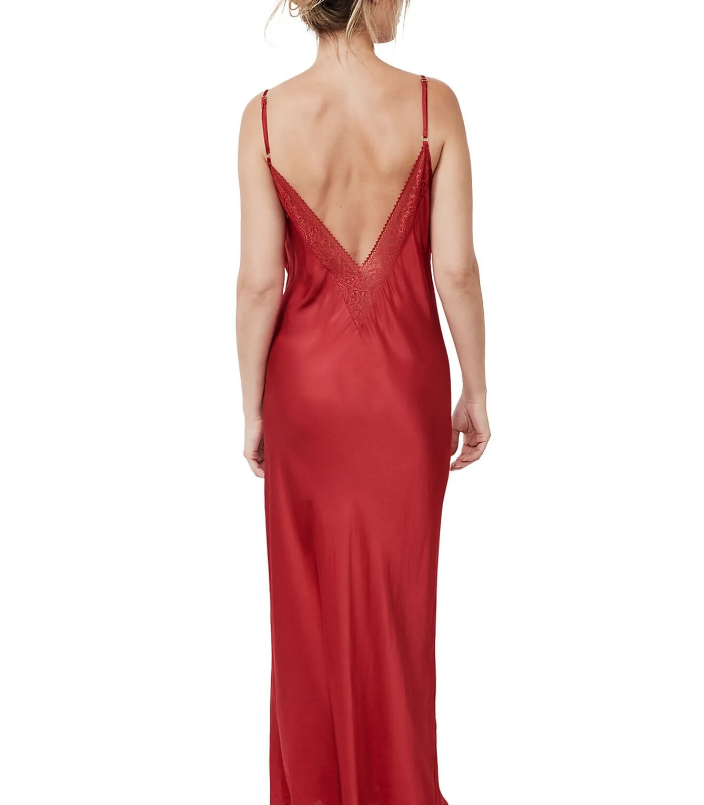 Deze chemise is de perfecte mix van elegantie en verfijning. Gemaakt van een luxe viscose stof, voelt het licht en vloeibaar aan en omhelst het zachtjes de rondingen van je figuur. De halslijn, versierd met fijn bloemen– en arabeskant, voegt een vleugje glamour toe en creëert een opvallend gedrapeerd effect. De lange, vloeiende snit zorgt voor optimaal comfort en een verfijnde look. De V–vormige halter voegt een gedurfde dimensie toe, terwijl het elegant en verfijnd blijft. Afgewerkt bij de halslijn en op de rug met een fijn, sierlijk picot vlechtje, voor een delicate touch. De dunne bandjes zijn verstelbaar voor een perfecte pasvorm.