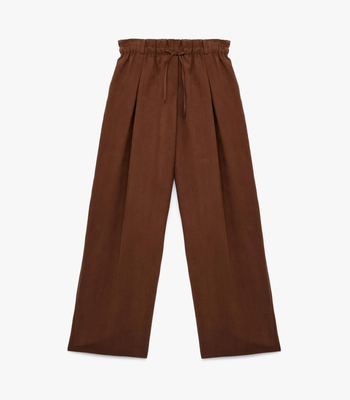 Koton Relax fit elastic waistband drawstring pleat detail wide leg trousers.