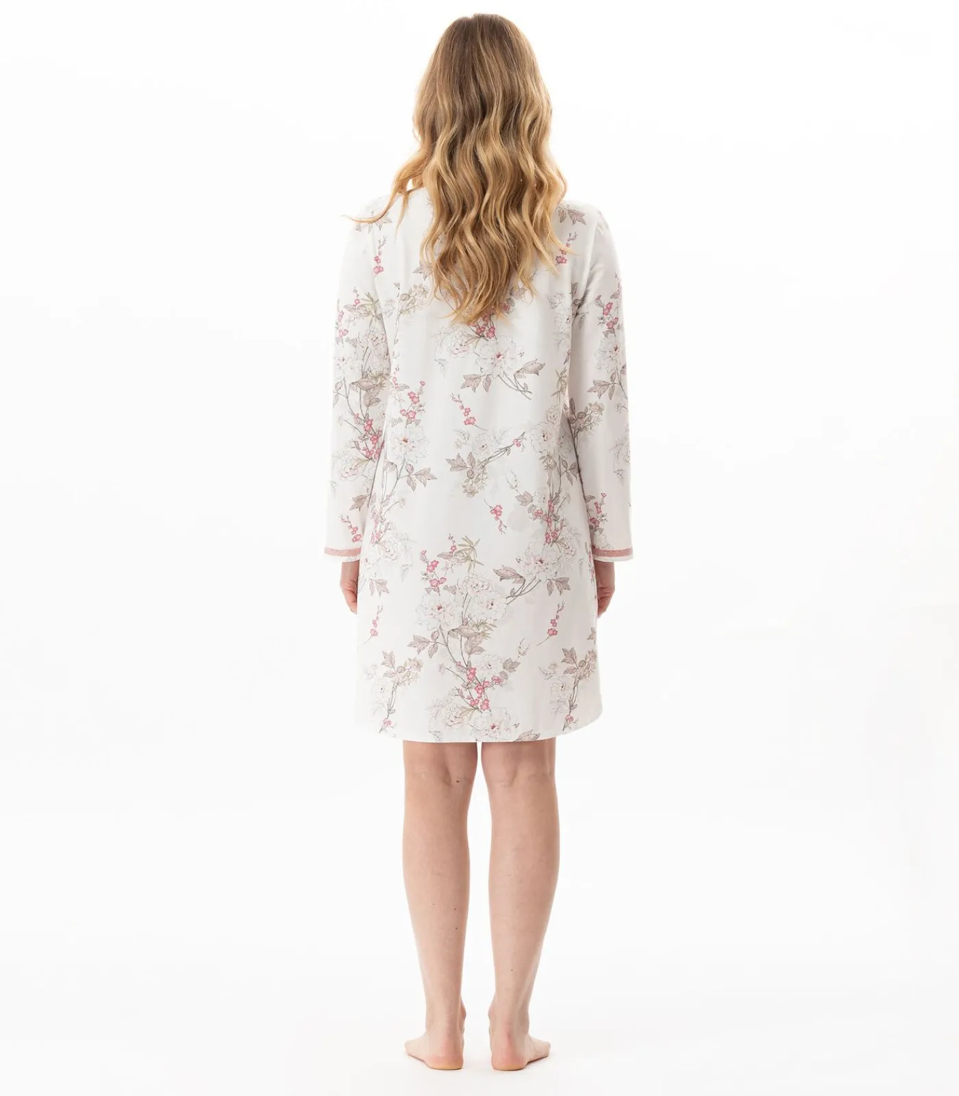 Gebruik het Kelly–nachthemd met print voor de eerste dagen van je zwangerschap. Buiten het seizoen. Voor koude avonden en ochtenden kunt u een kamerjas, badjas of Essentiel–jasje aan uw nachtkleding toevoegen.