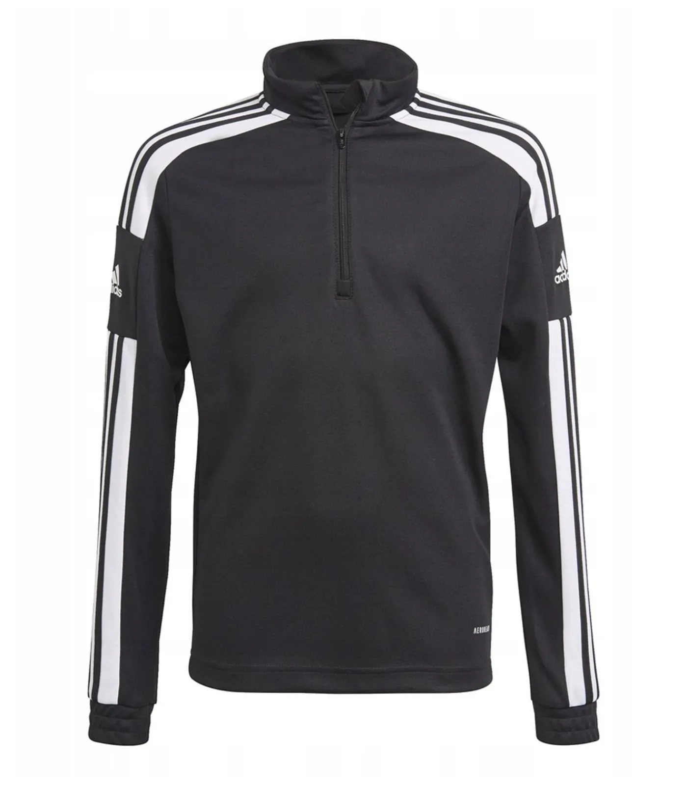 Adidas Squadra 21 zwart topje gemaakt van 100% hergebruikt polyester met Primegreen stof en een ontwerp dat bestaat uit logo’s, drukwerk, streepdetails en tekst. Deze top heeft een Aeroready stoftechnologie en een kinbeschermer. De manchetten zijn elastiek en hebben lange mouwen. Het heeft een staande kraaghalslijn en is geschikt voor regelmatig gebruik. Het heeft een pull–over met kwart rijtjes sluiting en is bedoeld voor training. De grootte wordt verstrekt voor kinderen van 5–6 jaar (24 in), 7–8 jaar (25 in), 9–10 jaar (28 in), 11–12 jaar (30,5 in) en 13–14 jaar (34 in).
