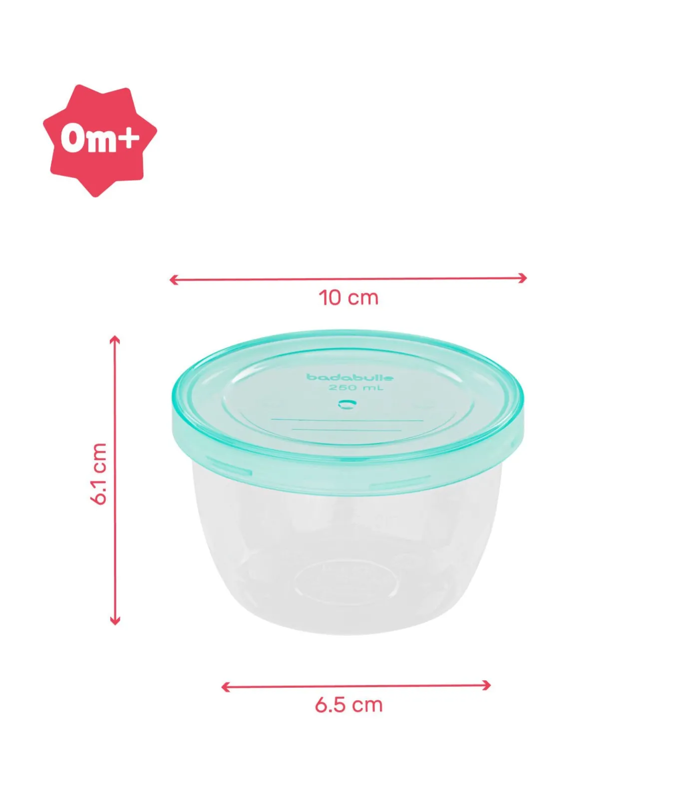Grote inhoud van 250 ml met hermetisch schroefdeksel Zichtbare schaal (in ml) en herschrijfbaar oppervlak op het deksel Magnetron– en vaatwasmachinebestendig Geschikt voor koelkast en vriezer, BPA vrij