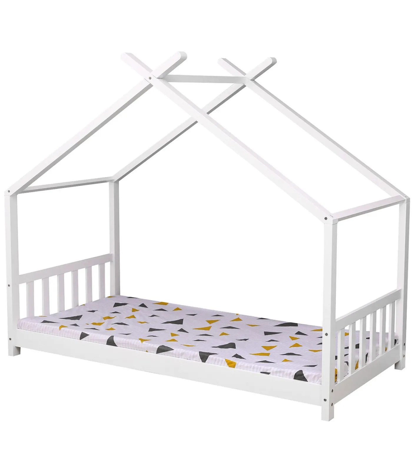 Welk kind heeft er nooit een hut gebouwd in zijn kamer om zijn verhalen tot leven te brengen? Dit kajuitbed is het ideale meubelstuk om de verbeelding van de kleintjes te ontwikkelen en tegelijkertijd een decoratief kantje aan te brengen om de kamer gemakkelijk in te richten. Dit bed van 190 x 90 cm is gemaakt van hout en heeft een lattenbodem, perfect aangepast aan jonge kinderen. Solide, origineel, modern, dit meubilair zal zijn plaats vinden in uw huis.