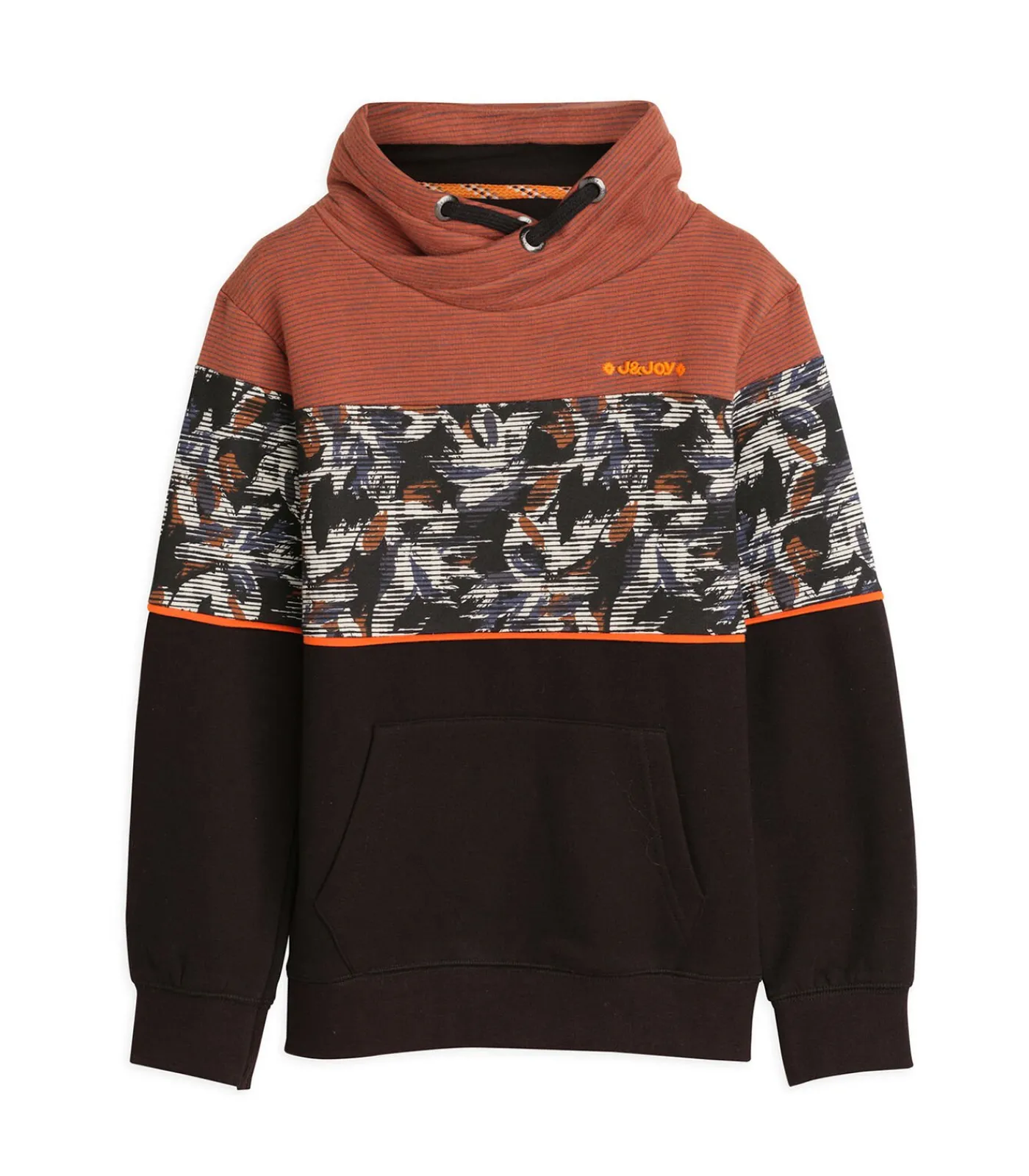 Ga voor een trendy en casual look met deze driekleurige jongenssweater, geïnspireerd op de kosmopolitische energie van Santiago. Gemaakt van 98% katoen en 2% polyester, biedt deze sweater optimaal comfort en een moderne rechte pasvorm. De opstaande kraag met contrasterend trekkoord en elastische geribbelde boorden en manchetten zorgen voor een vleugje urban stijl. De lange mouwen en kangoeroezak zorgen voor een praktische touch, terwijl het bloemenpatroon en het geborduurde J&JOY–logo op het hart een vleugje frisheid en authenticiteit toevoegen. Kies voor deze unieke sweater die comfort, stijl en originaliteit combineert. Bestel nu en voeg een must–have toe aan de garderobe van uw kind.