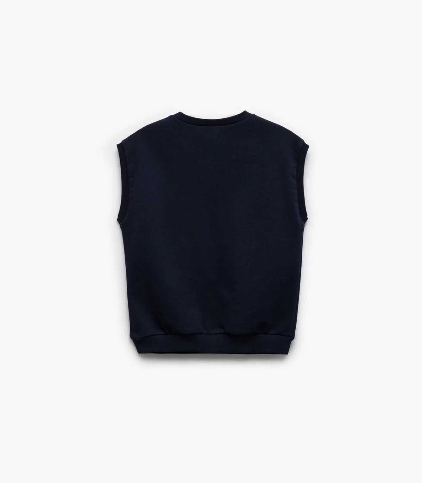 Deze mouwloze kindertrui met V–hals is perfect voor zowel schooldagen als dagelijks gebruik. Dankzij het comfortabele ontwerp van katoen biedt het veelzijdigheid en draaggemak. Het eenvoudige model past bij diverse kledingstukken, waardoor het een veelzijdige toevoeging aan de kledingkast van je kind is. Het zachte materiaal zorgt voor langdurig comfort.