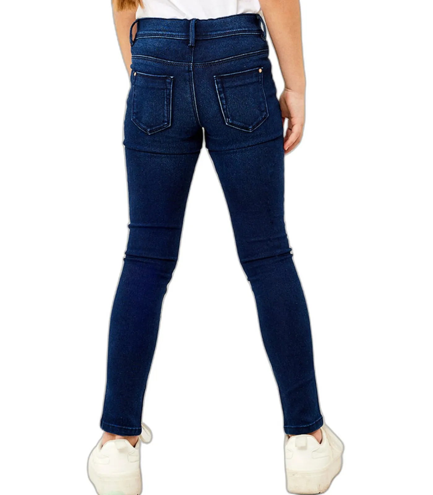 – Type detail: Skinny fit jeans– Stof: Denim is een duurzaam geweven materiaal dat verkrijgbaar is in verschillende uitdrukkingen voor een unieke look– Maat/Hoogte: Regular fit– Wasafwerking: Versleten effect voor karakter– Sluiting/Glijsluiting: Klittenbandsluiting en ritssluiting– Extra details: – Verstelbare taille– – Klinknagels– – Andere zak: voor– en achterzakken– Gelegenheid/styling: Vind de perfecte jeans en verras uw kind met tijdloze stijlen die zorgen voor een coole look en bewegingsvrijheid– Pasvorm: Polly is een jeans met een doorlopende skinny fit.