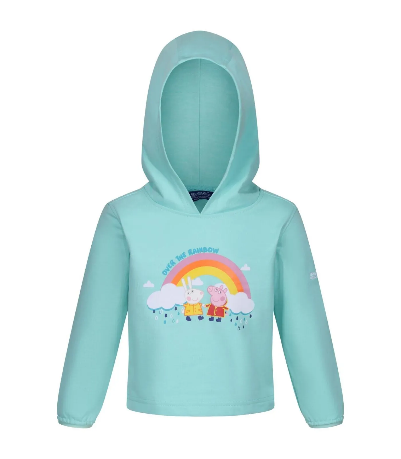 Dit sweatshirt met capuchon van Regatta heeft personages en beelden van het populaire kindertelevisieprogramma Peppa Pig. Het sweatshirt is gemaakt van een zachte katoen– en polyestermix met een geborstelde achterkant van 180 gram per vierkante meter. Op de voorkant staan Peppa Pig en haar vriendin Rebecca Rabbit afgebeeld tussen wolken, een regenboog en verwijzingen naar verwante teksten. Het duurzame ontwerp is bedoeld om herhaaldelijk wassen en dragen te weerstaan. De vastgegroeide capuchon biedt extra bedekking en comfort. Dankzij de volledige ritssluiting aan de voorkant kun je de jas gemakkelijk in laagjes dragen. Dit hoogwaardige product met officiële licentie is zeer geschikt voor kinderen die genieten van de avonturen van Peppa Pig.