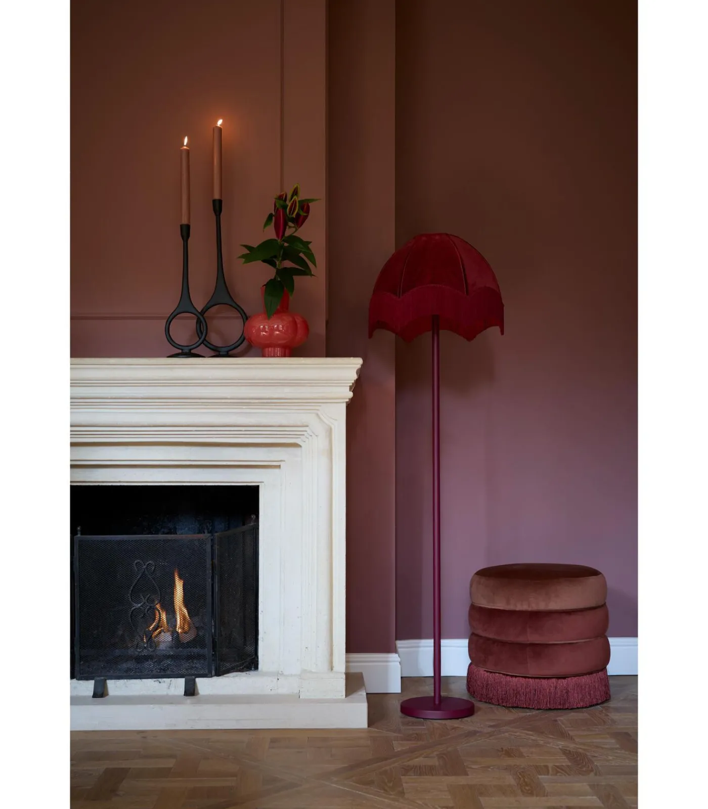 Light & Living Lampenkap Malacia – Donkerrood – Ø45cm